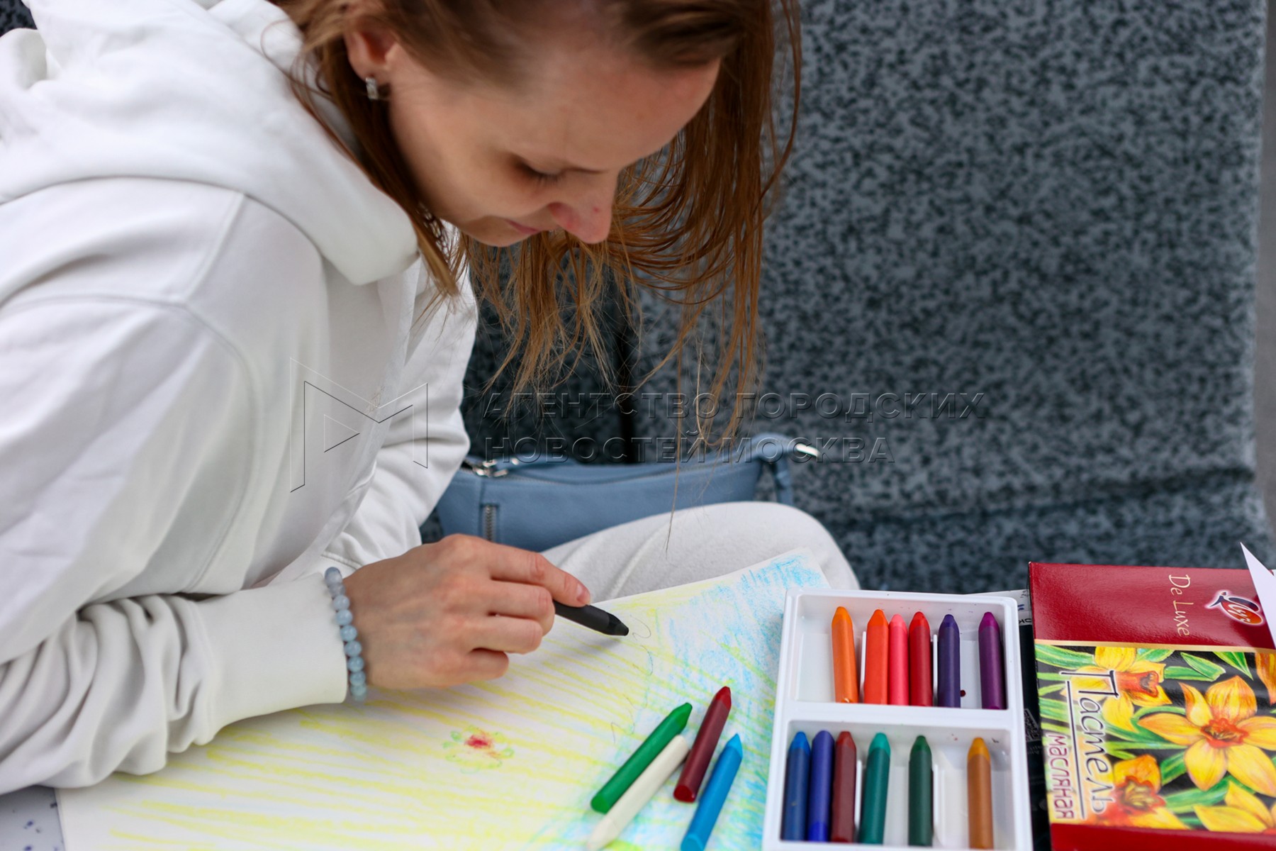 - Описание: Участница арт-терапии в рамках проекта «Искусство в метро» на борту электросудна на Москве-реке.