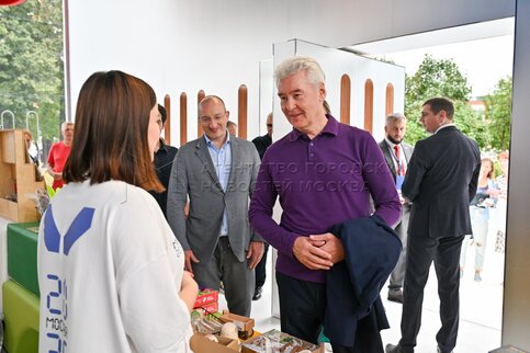 Мэр столицы Сергей Собянин во время посещения площадки маркета будущего «Сделано ...