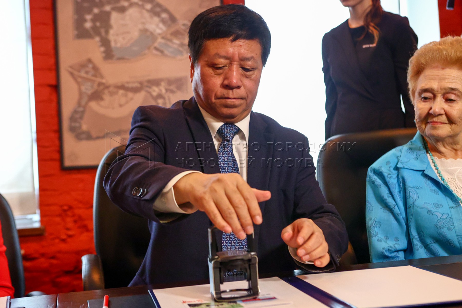 Чрезвычайный и полномочный посол КНР в РФ Чжан Ханьхуэй. Церемония гашения почтов...