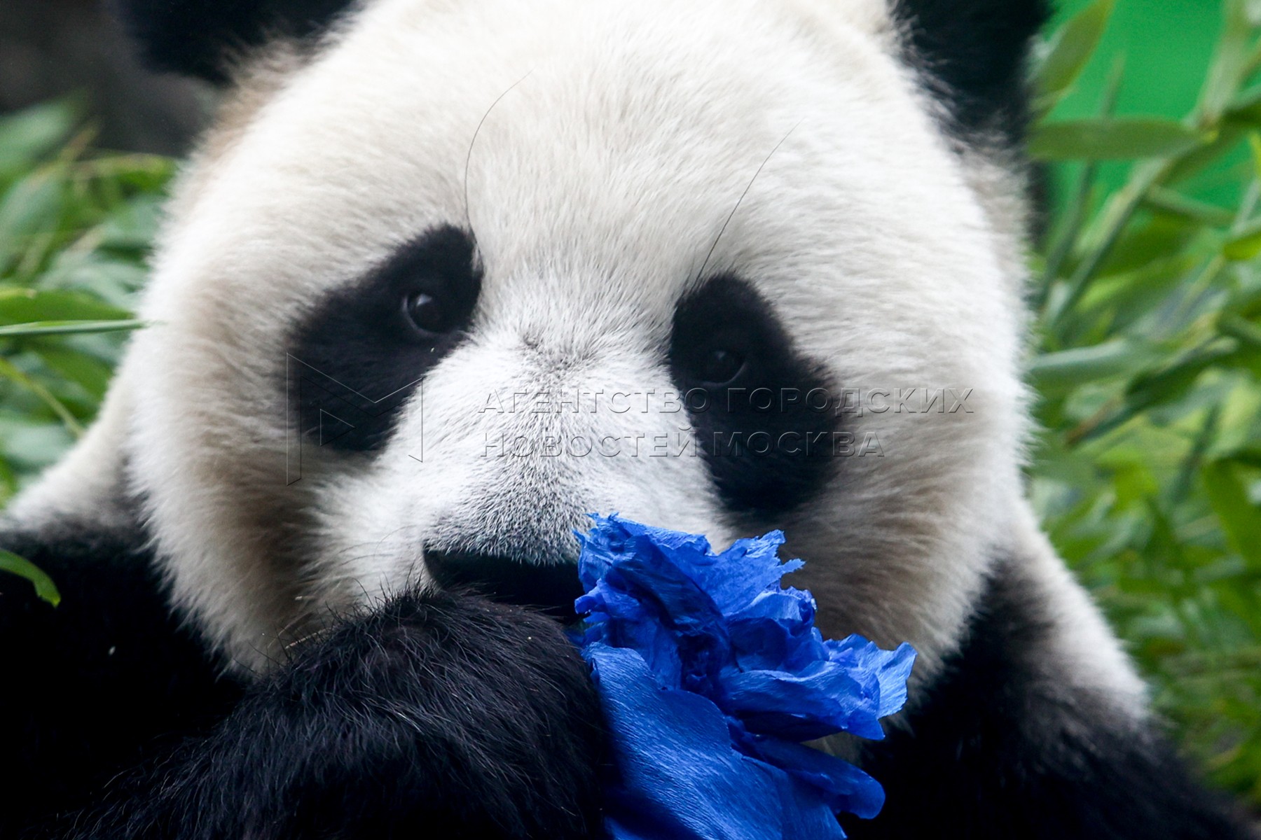 Панда Катюша в Московском зоопарке во время праздничных мероприятий в честь ее пе...