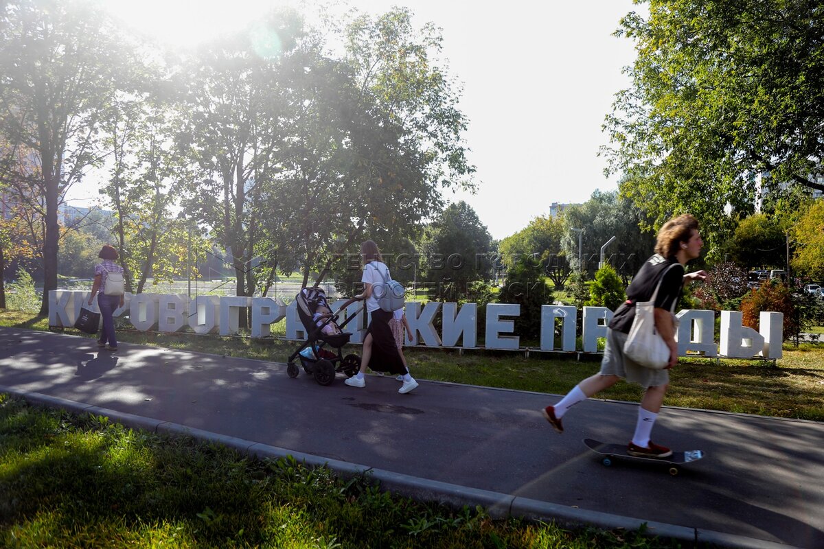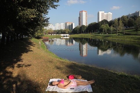 Благоустроенная территория около Кировоградских прудов в столичном районе Чертано...