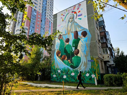 Православный мурал, посвященный княгине Елизавете Федоровне Романовой, на ул. Поб...