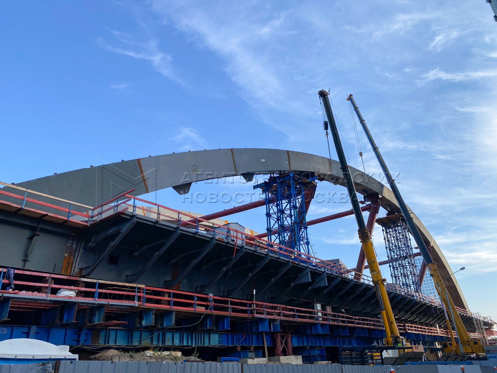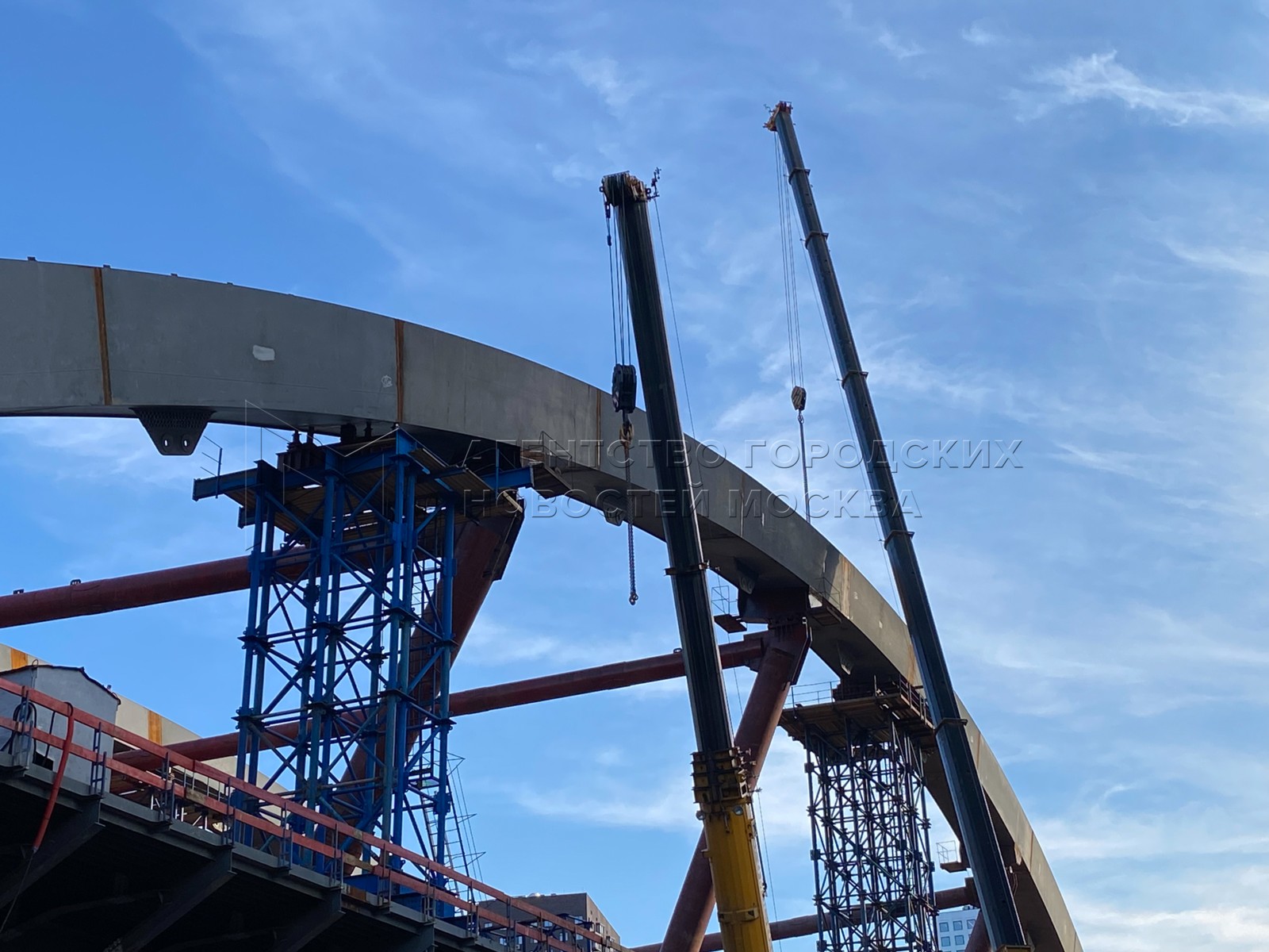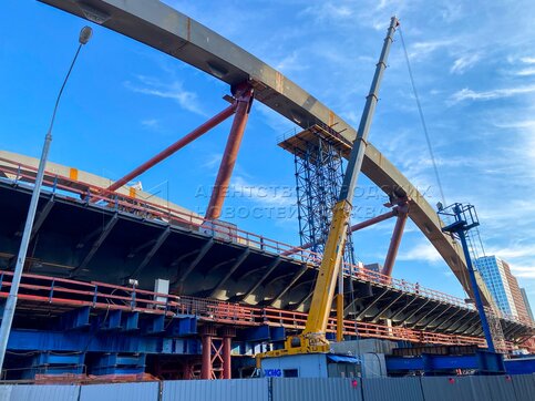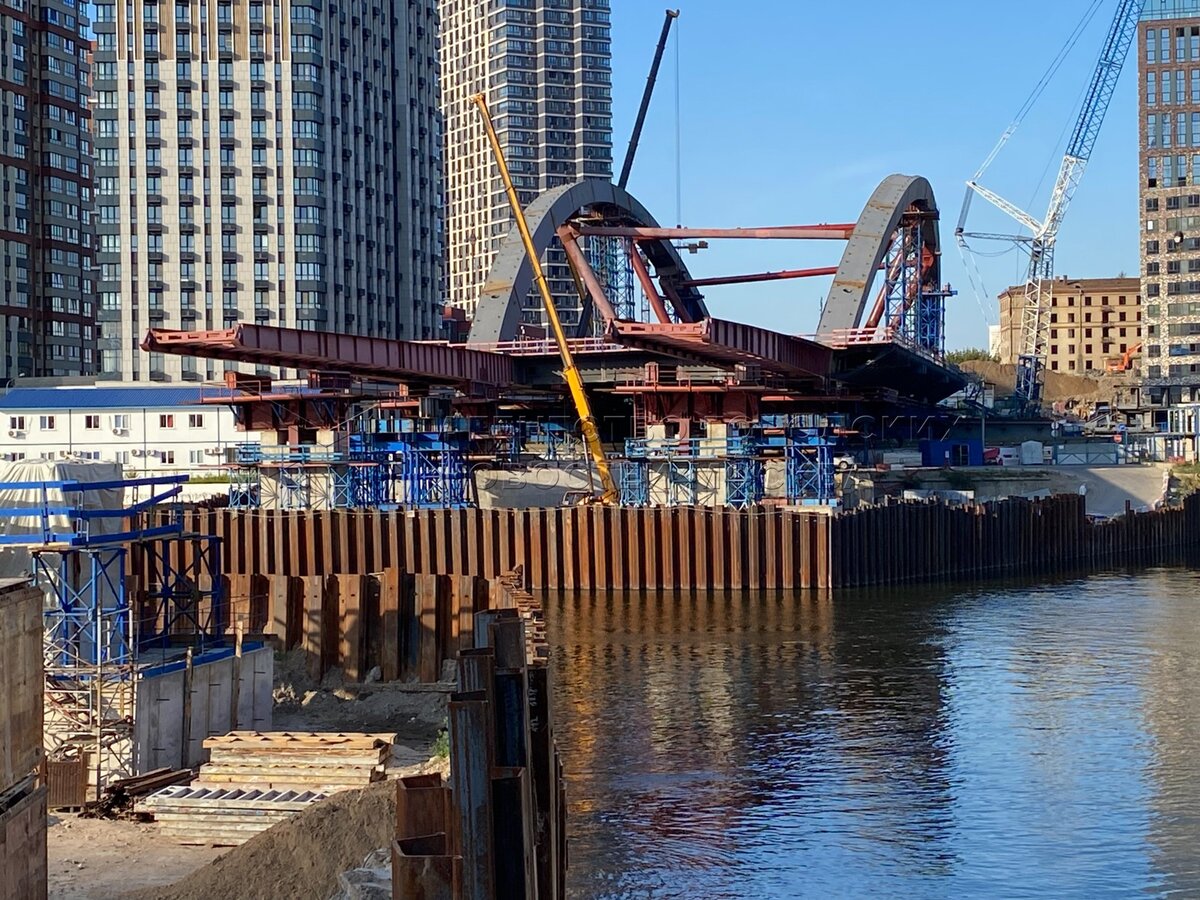 Строительство автомобильного путепровода через Москву-реку, который соединит Бере...