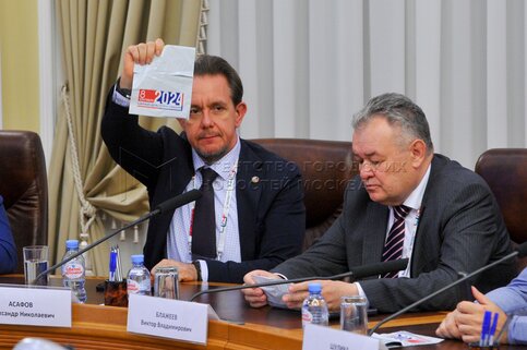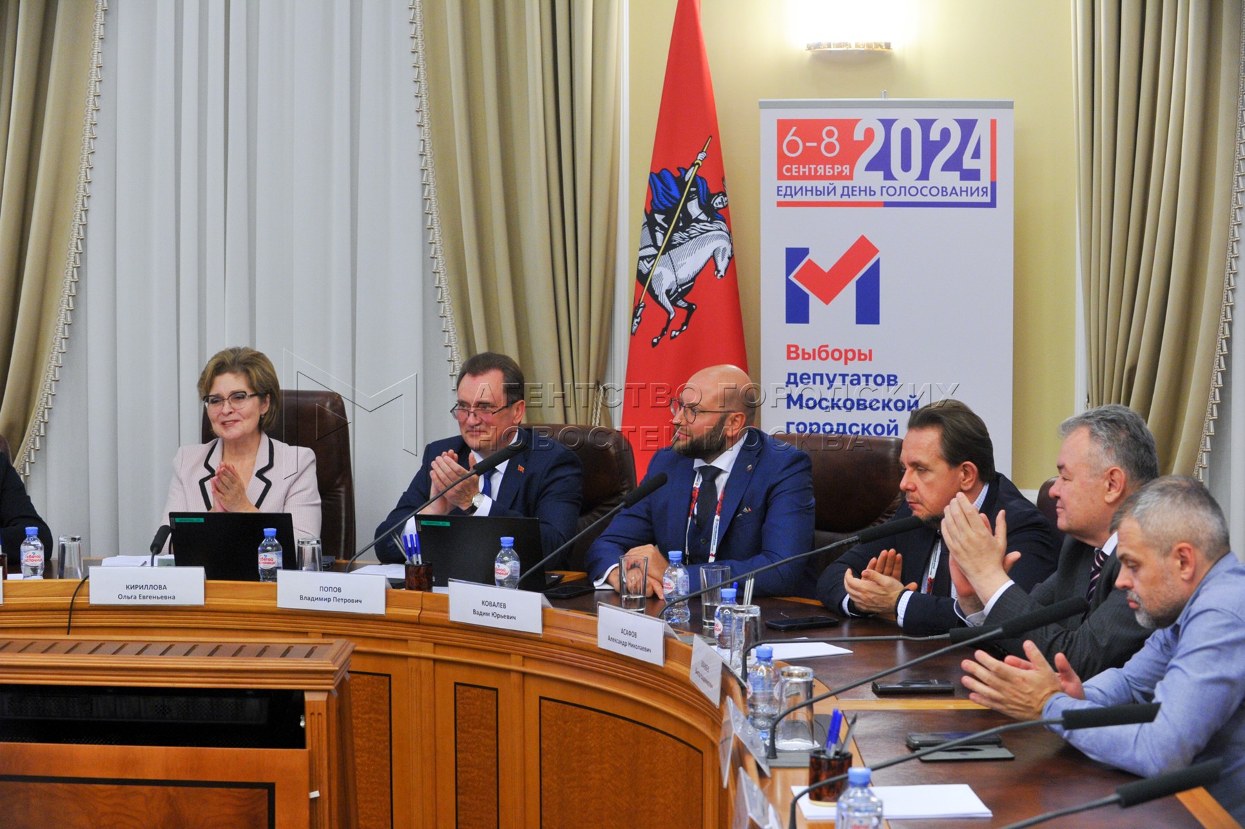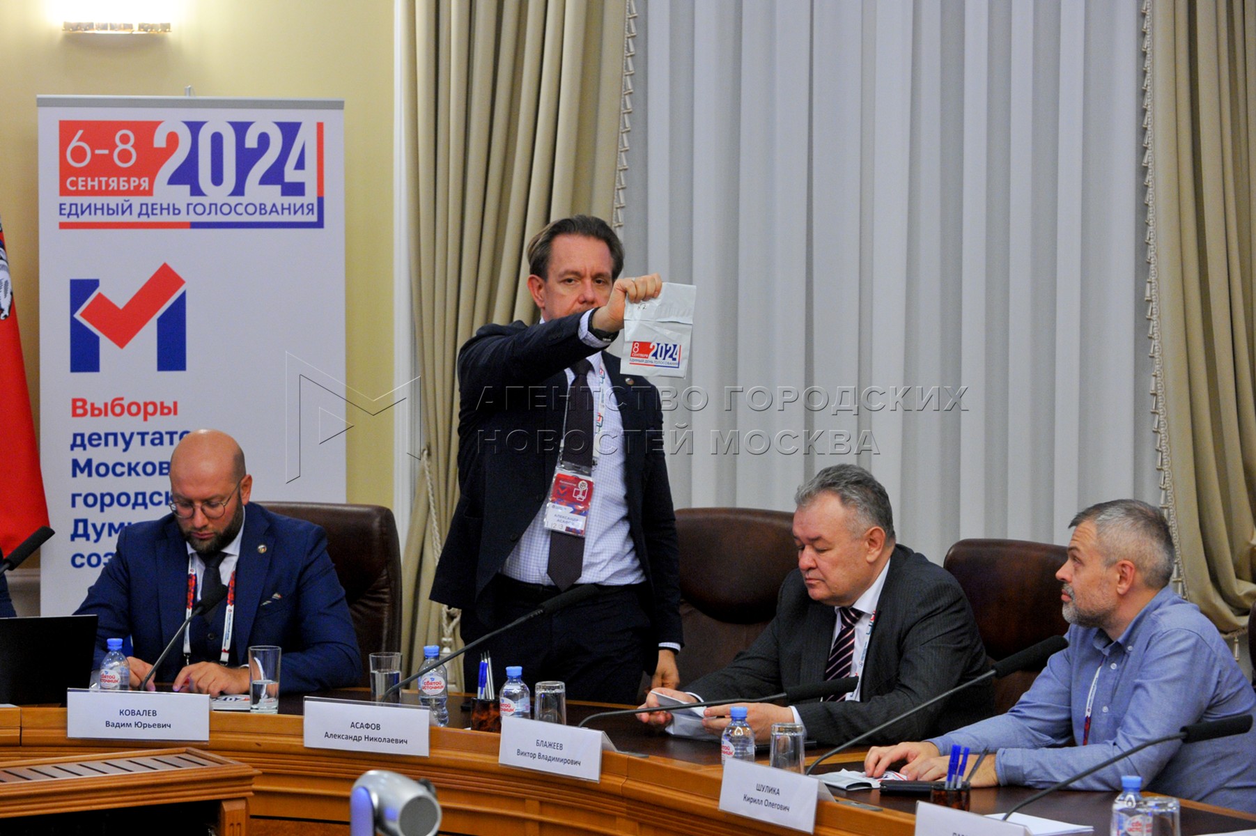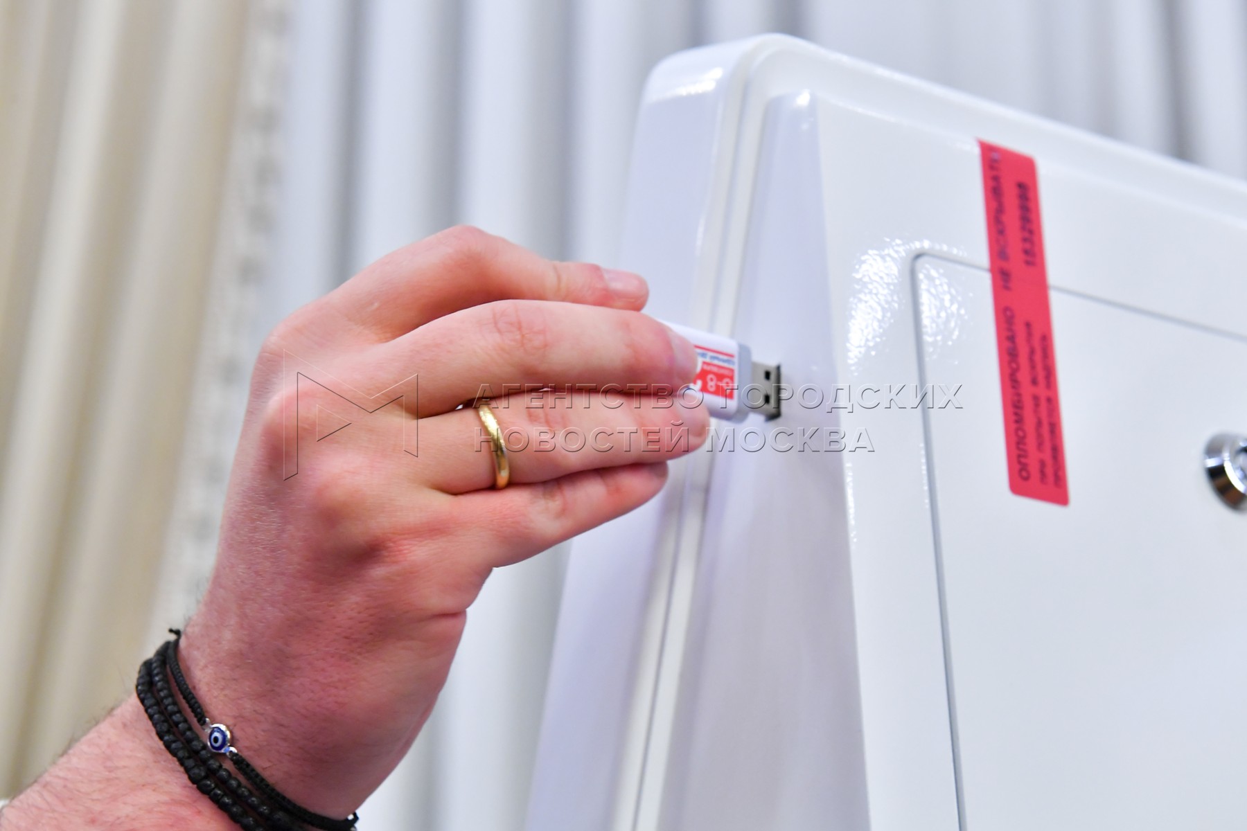 - Описание: Председатель Мосгоризбиркома Ольга Кириллова и секретарь Мосгоризбиркома Владимир Попов. Процедура сборки ключа расшифрования результатов при проведении дистанционного электронного голосования на выборах депутатов Мосгордумы, ТиНАО и Куркино в зале заседаний Московской городской избирательной комиссии.