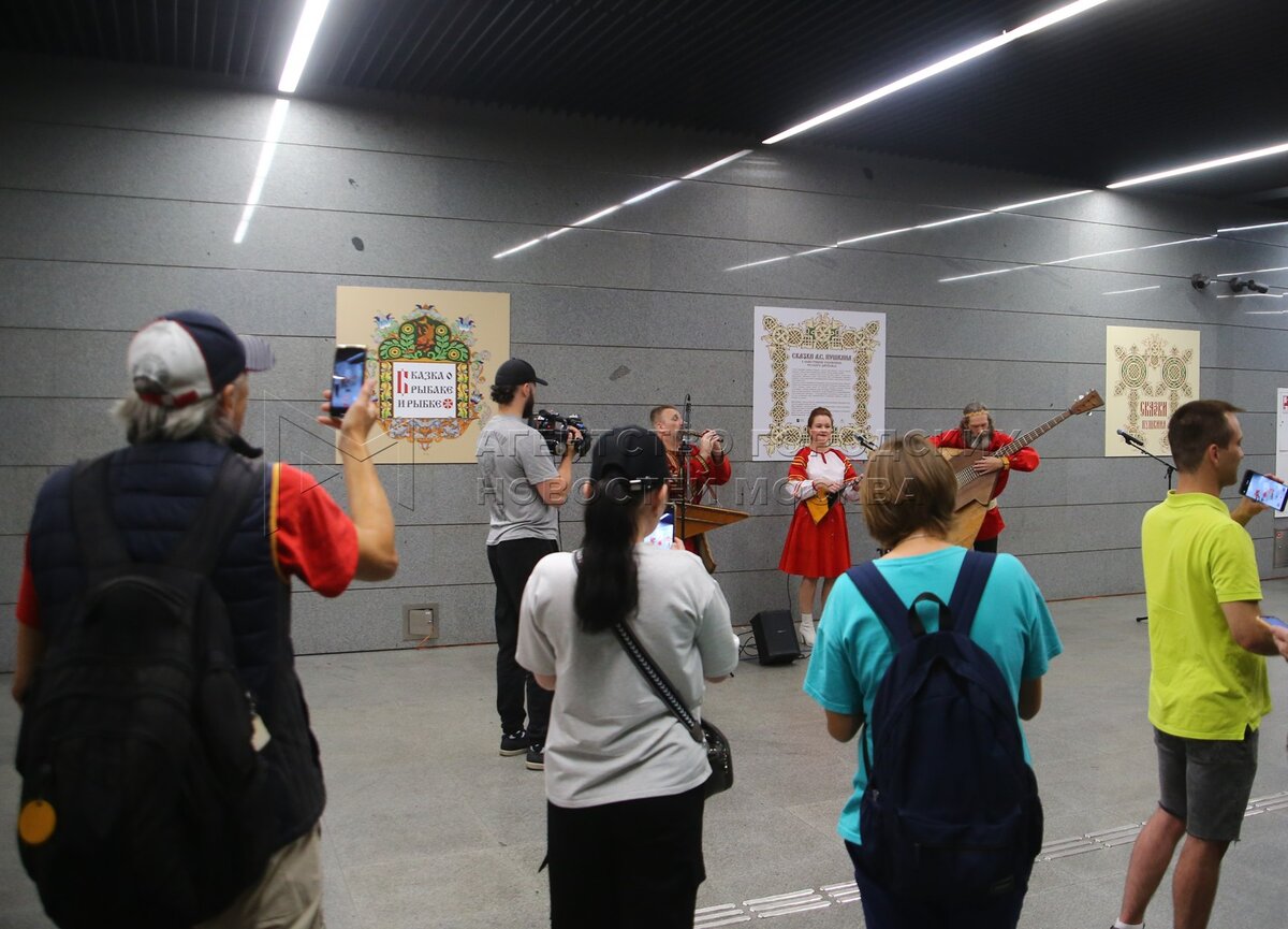 • Описание: Открытие выставки художников-иллюстраторов «Сказки Пушкина» на станции «Петровский парк» Большой кольцевой линии Московского метрополитена.
