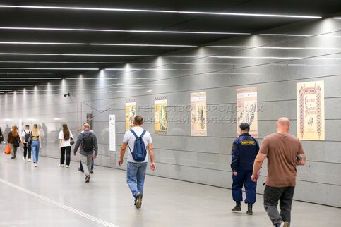 Открытие выставки художников-иллюстраторов «Сказки Пушкина» на станции «Петровский парк» Большой кольцевой линии Московского метрополитена.