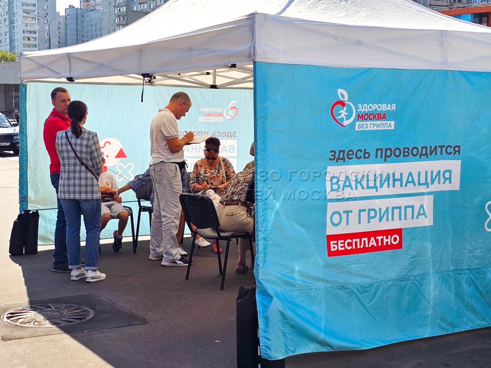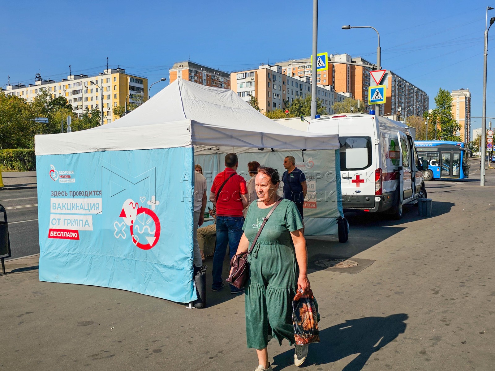 Пункт вакцинации от гриппа у станции метро «Медведково».