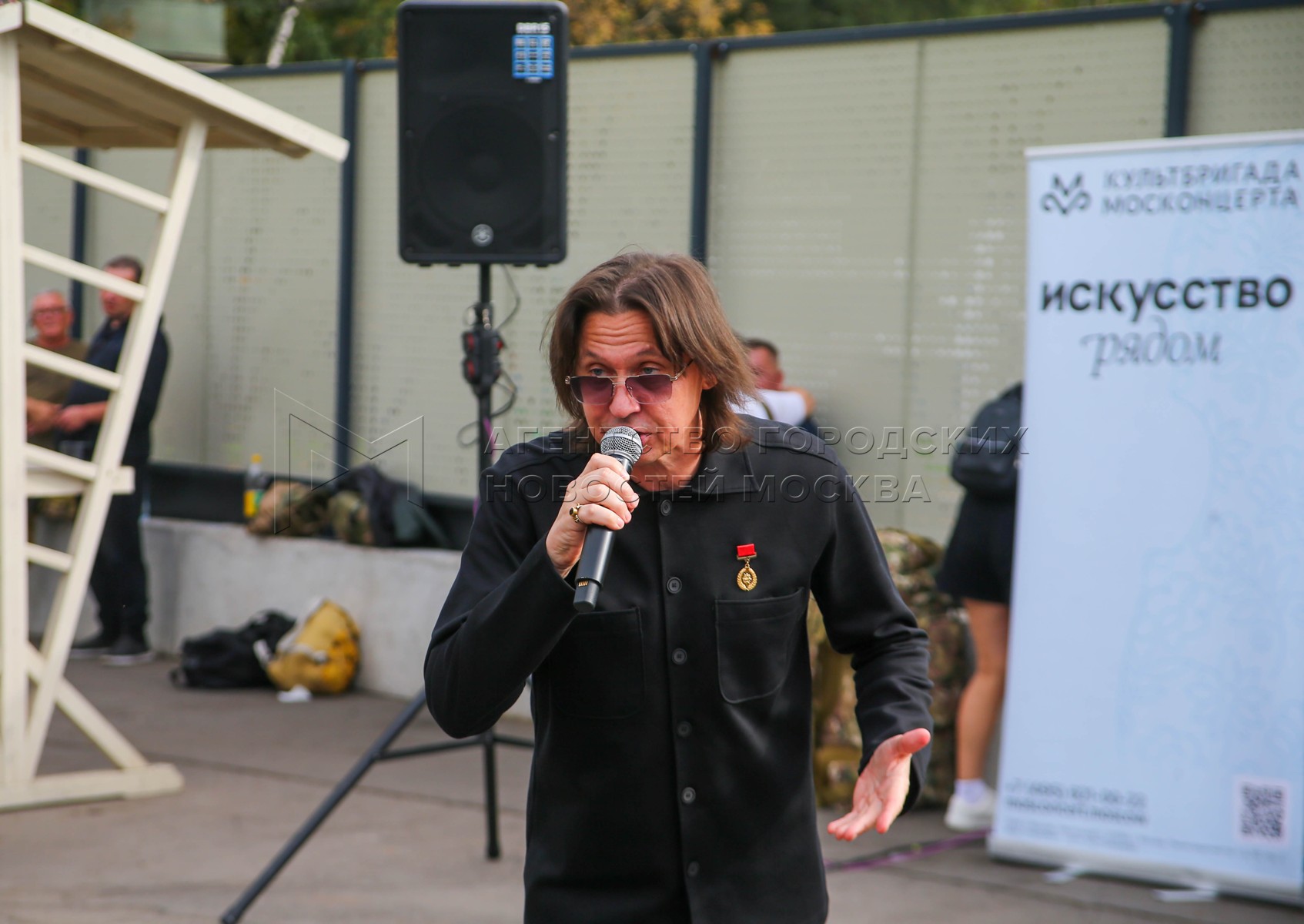 Солист группы «Русский характер» Юрий Кононов посетил Единый пункт отбора на военную службу по контракту и дал концерт перед военнослужащими.