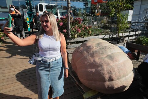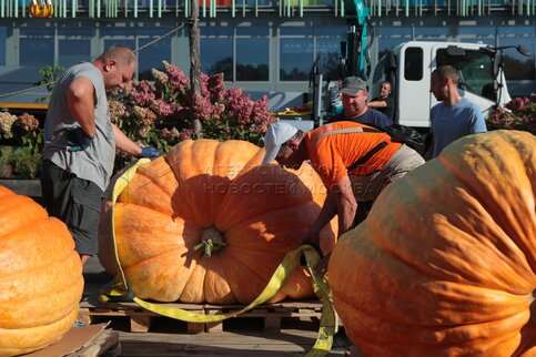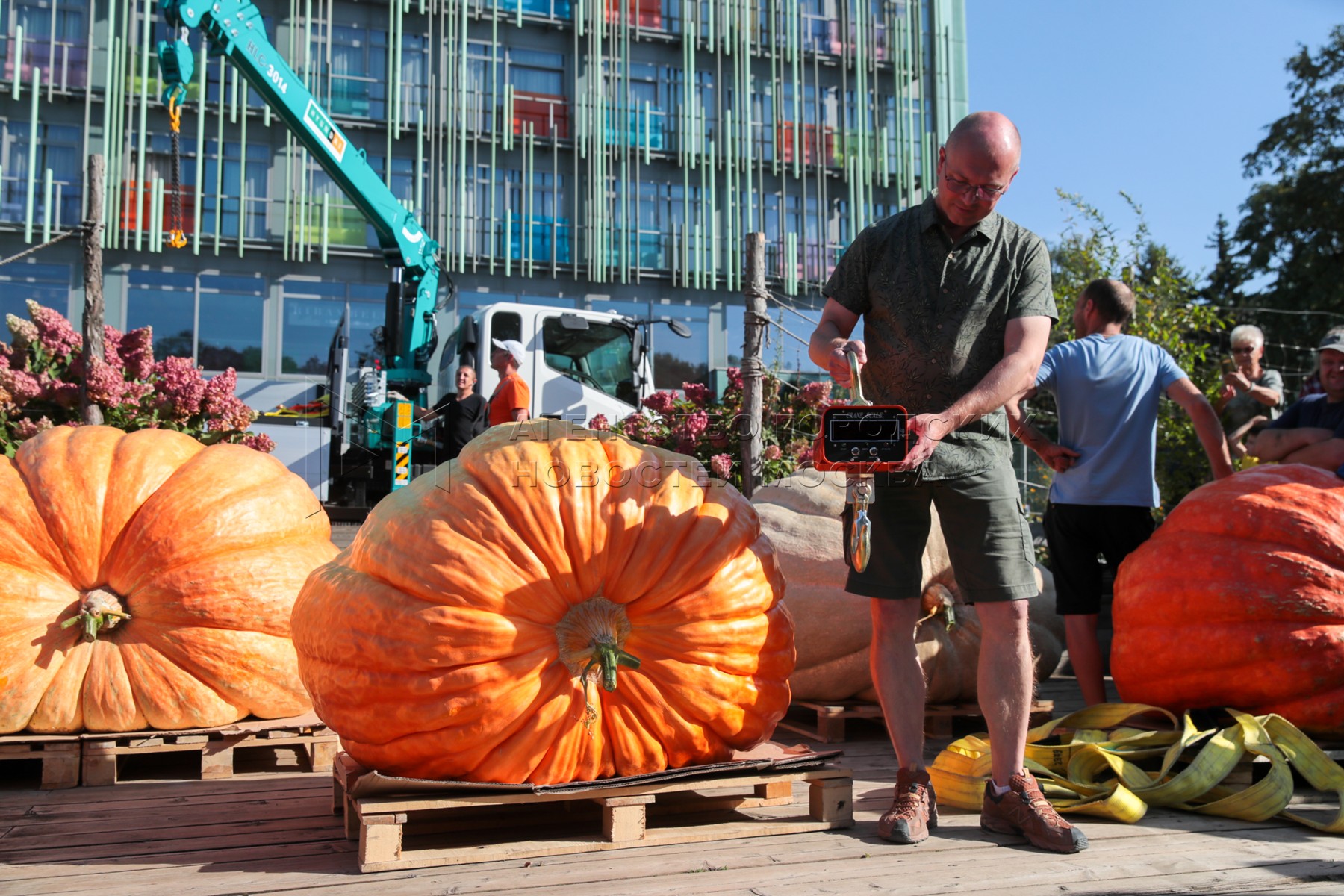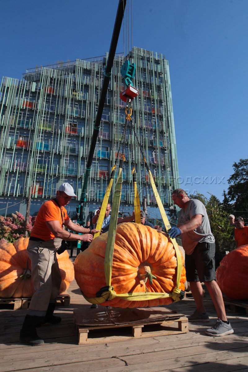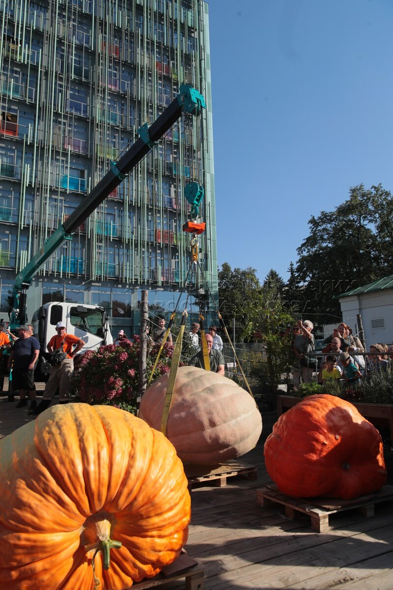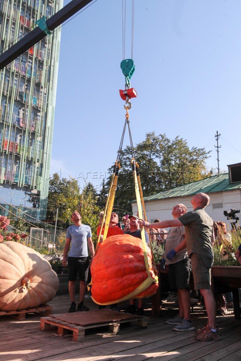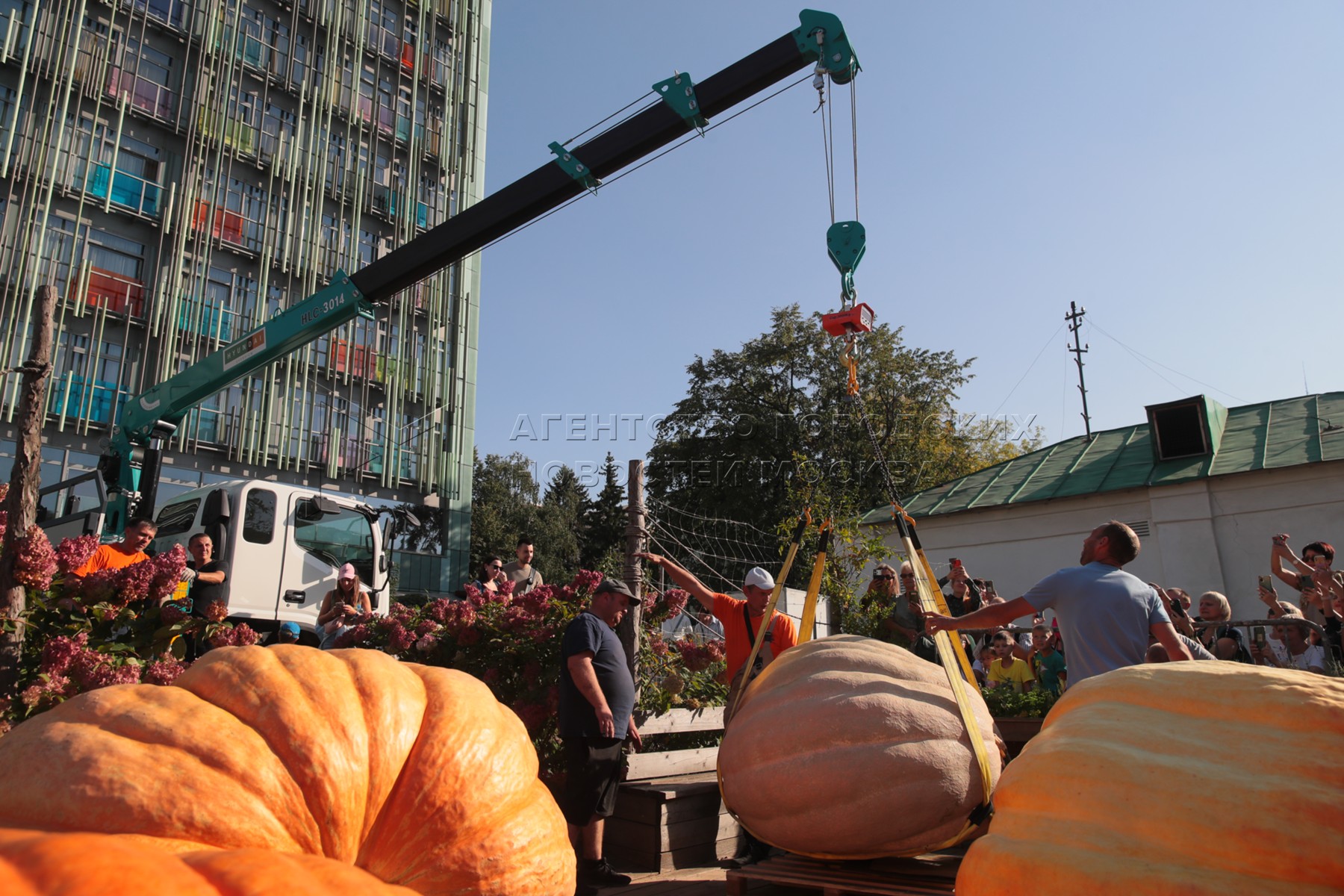 Торжественное взвешивание самых больших тыкв, выращенных в России в этом году, в ...