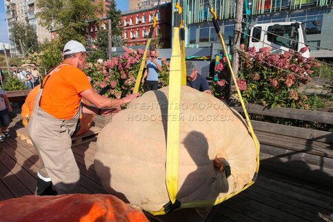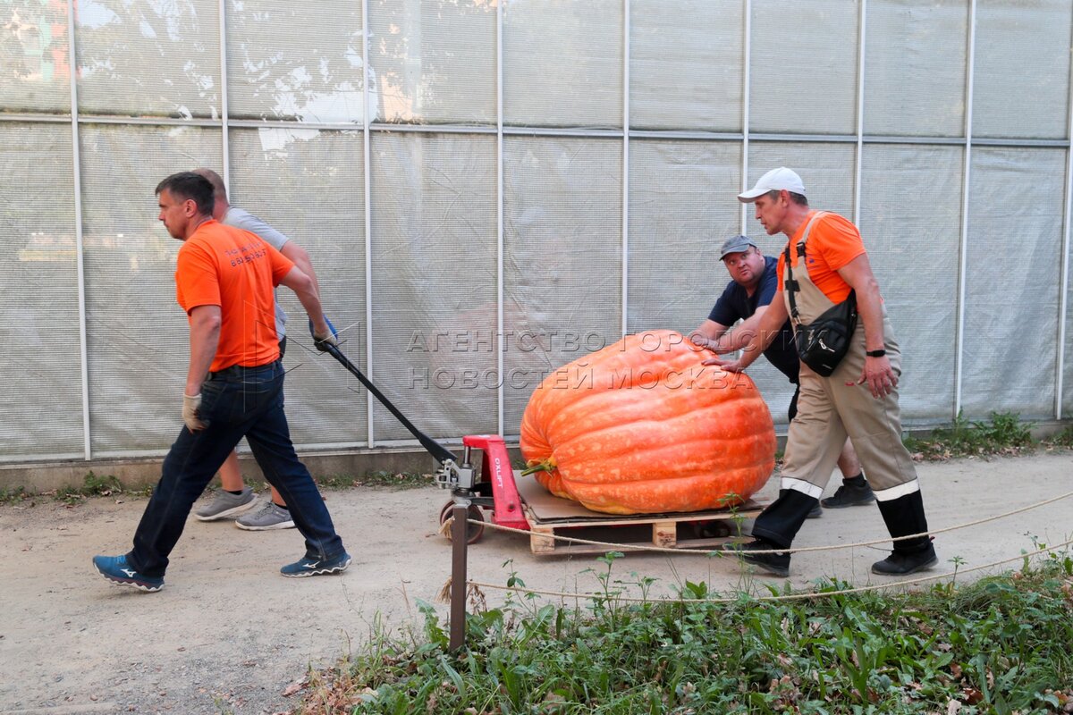 • Заголовок: Взвешивание в «Аптекарском огороде» самых больших тыкв, выращенных в этом году в России