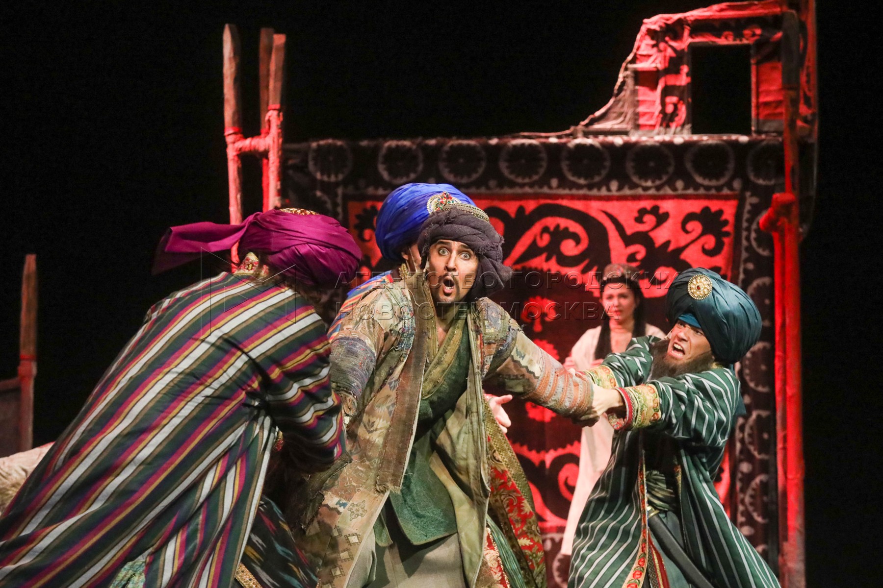 Актер Георгий Шабанов в роли Султана во время показа музыкального спектакля «Дале...