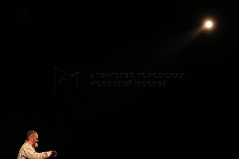 Актер Сергей Батов роли Акына, купца во время показа музыкального спектакля «Дале...
