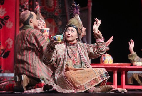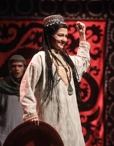 Актриса Гульмарьям Смирнова в роли Гюльшат, дочери чайханщика во время показа муз...