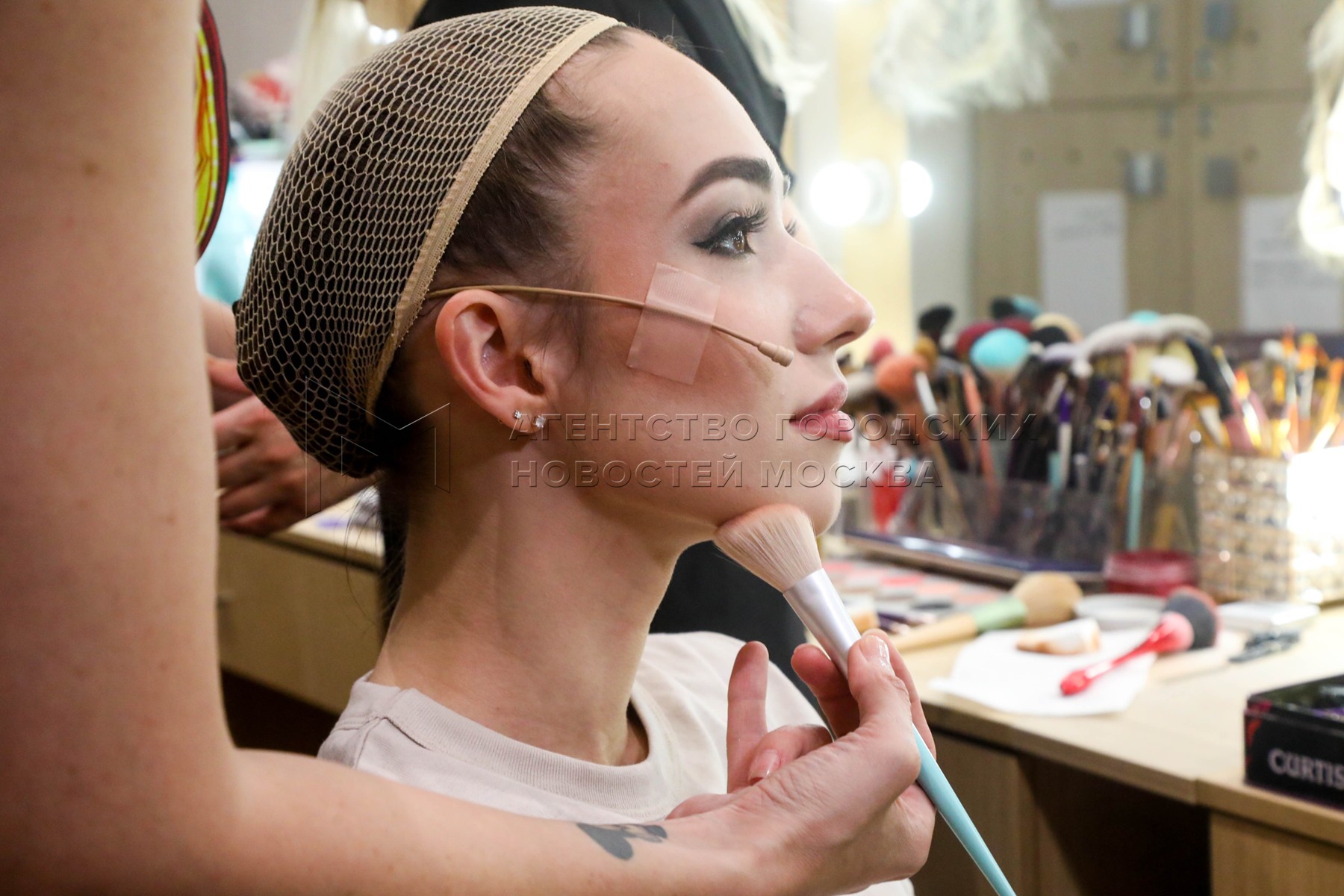 Художник по гриму Анна Скороженок и актриса Вероника Егорова в гримерной перед по...