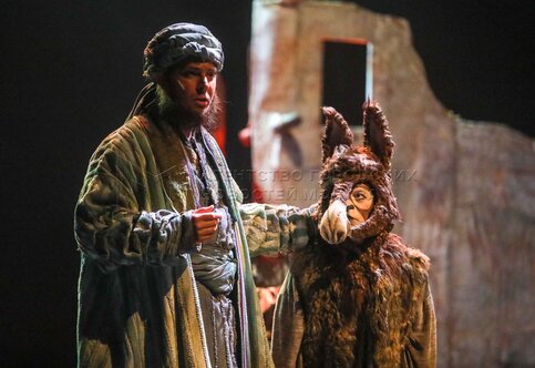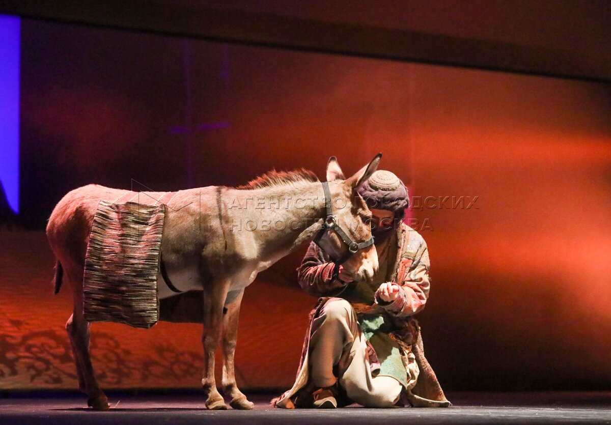 Актер Геннадий Краковский в роли Ишака (в центре) во время показа музыкального сп...