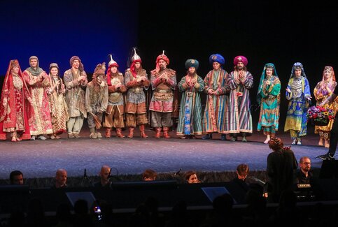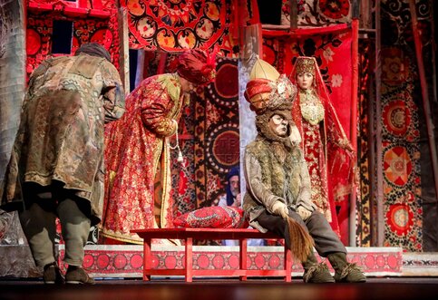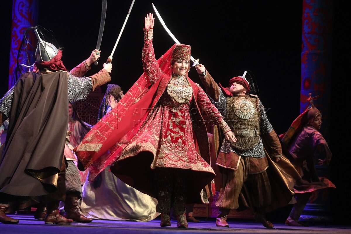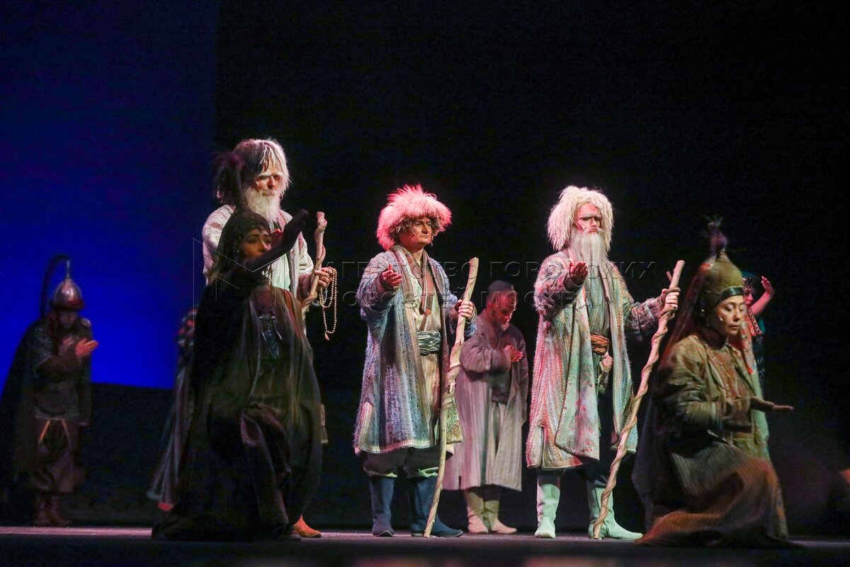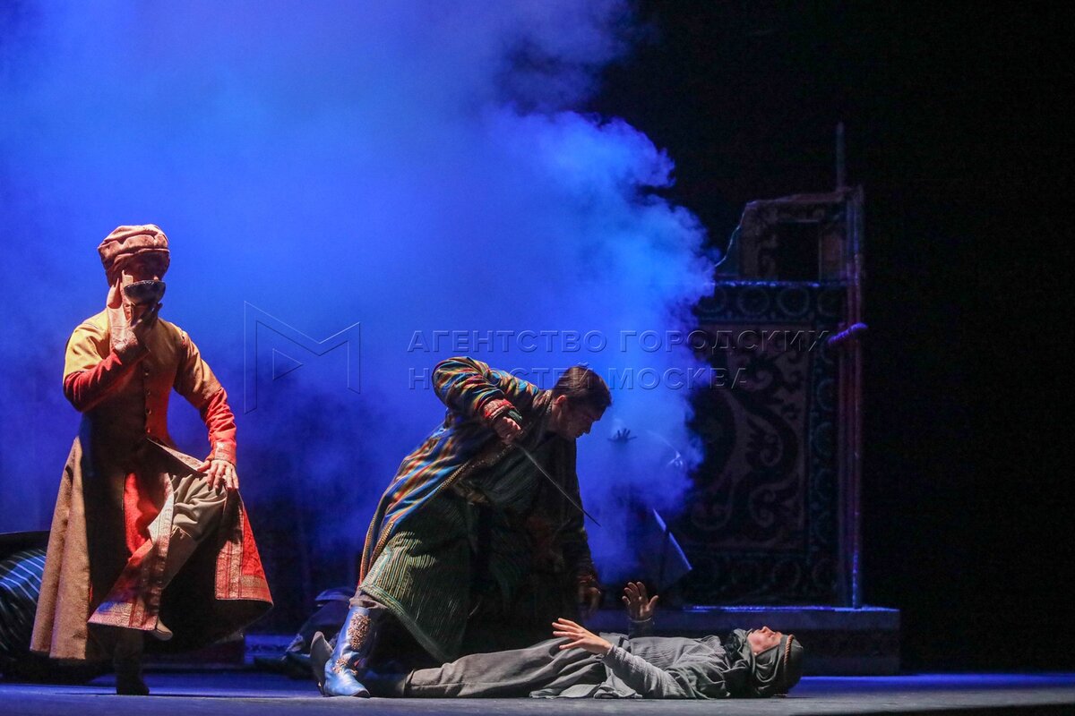 Актер Даниил Исламов в роли Касыма (в центре) во время показа музыкального спекта...