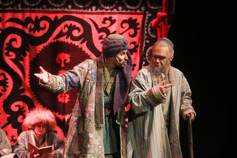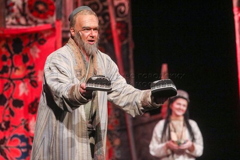 • Описание: Актеры Руфат Акчурин в роли Ходжи Насреддина (в центре) во время показа музыкального спектакля «Далеко-далеко на Востоке» в Театре Терезы Дуровой.