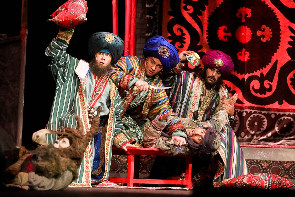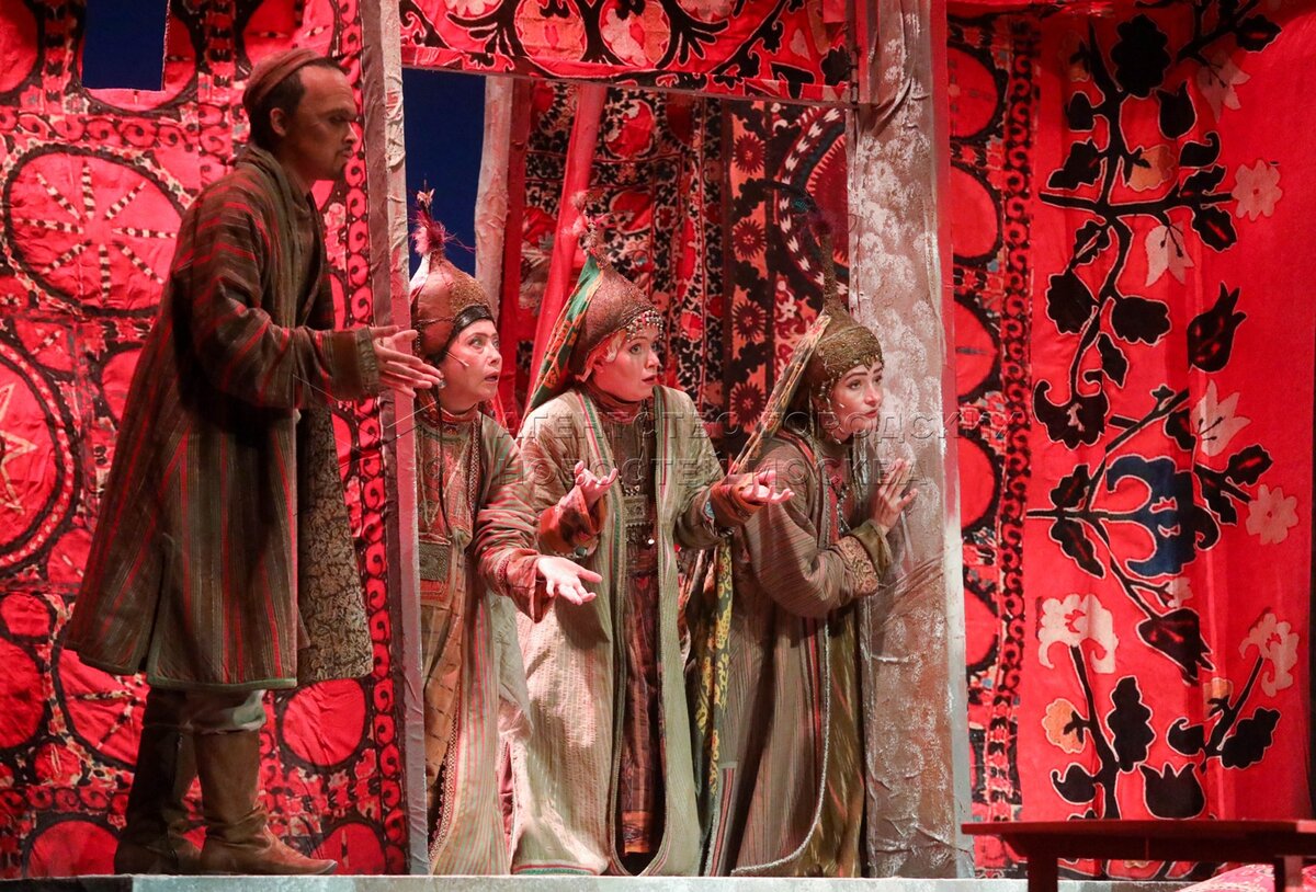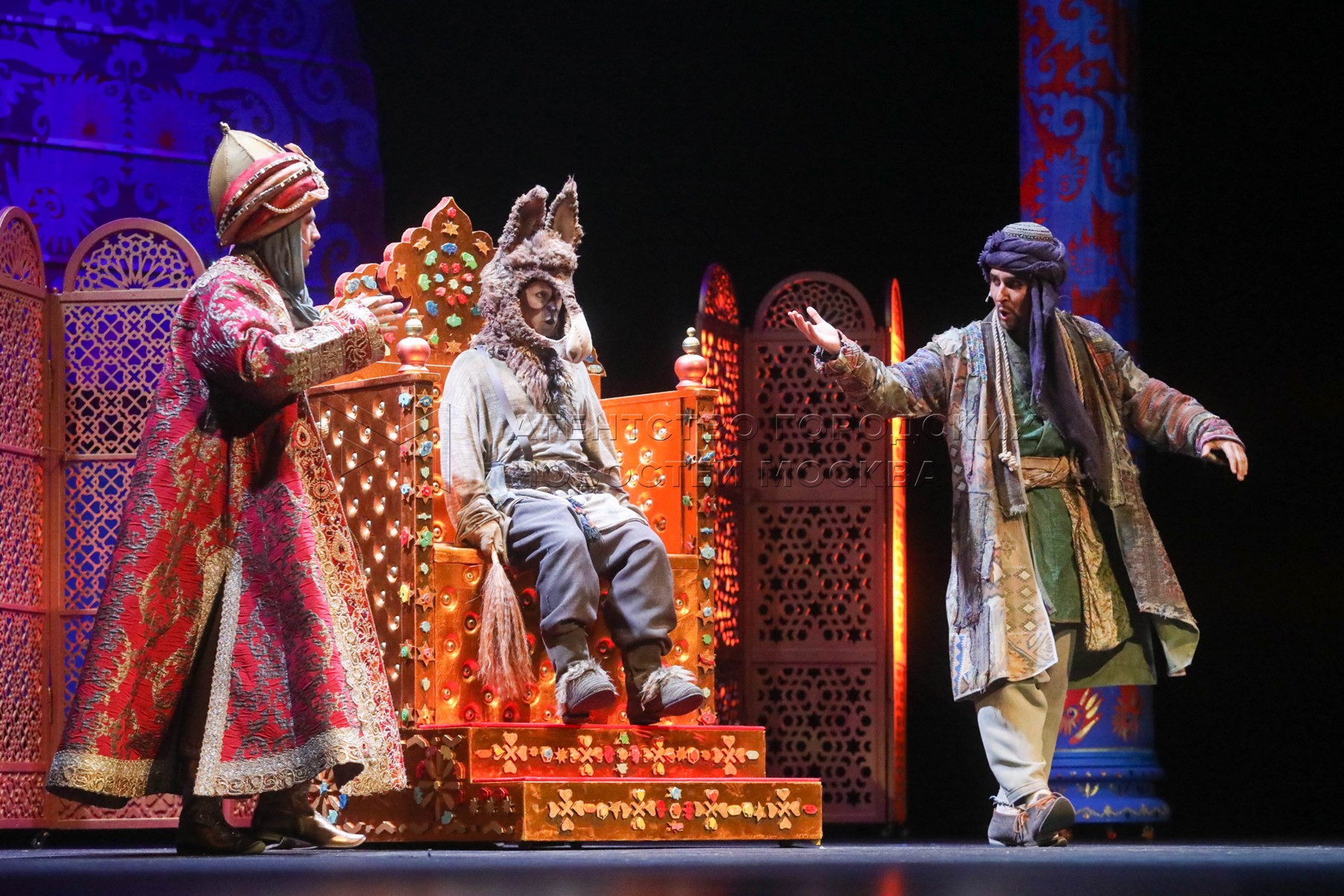 Актеры Руфат Акчурин в роли Ходжи Насреддина (в центре) во время показа музыкального спектакля «Далеко-далеко на Востоке» в Театре Терезы Дуровой.