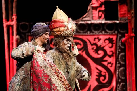 Актер Георгий Шабанов в роли Султана во время показа музыкального спектакля «Дале...
