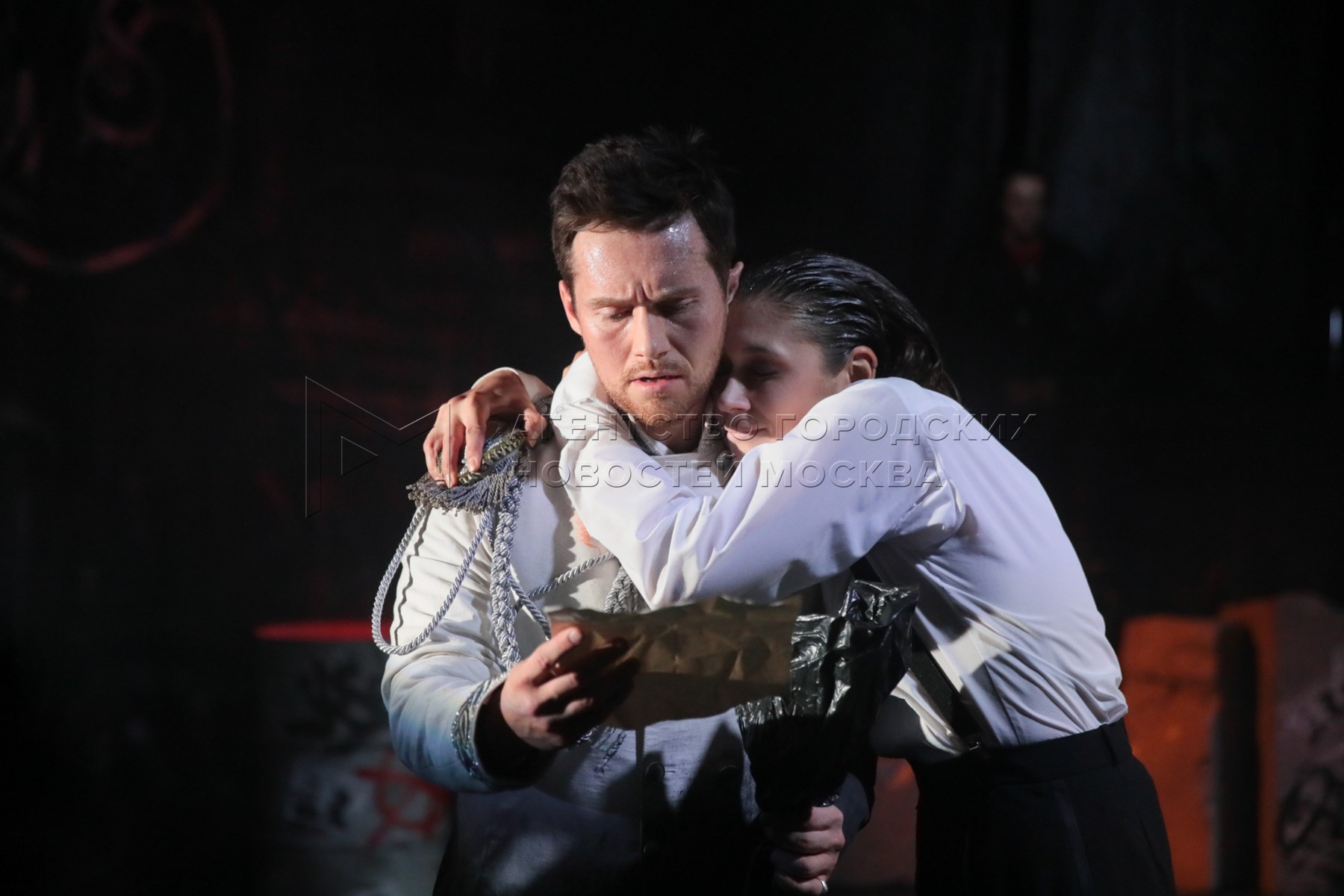 Актеры Алеся Алисиевич (Амалия) и Илья Антоненко (Карл Моор). Репетиция премьерно...