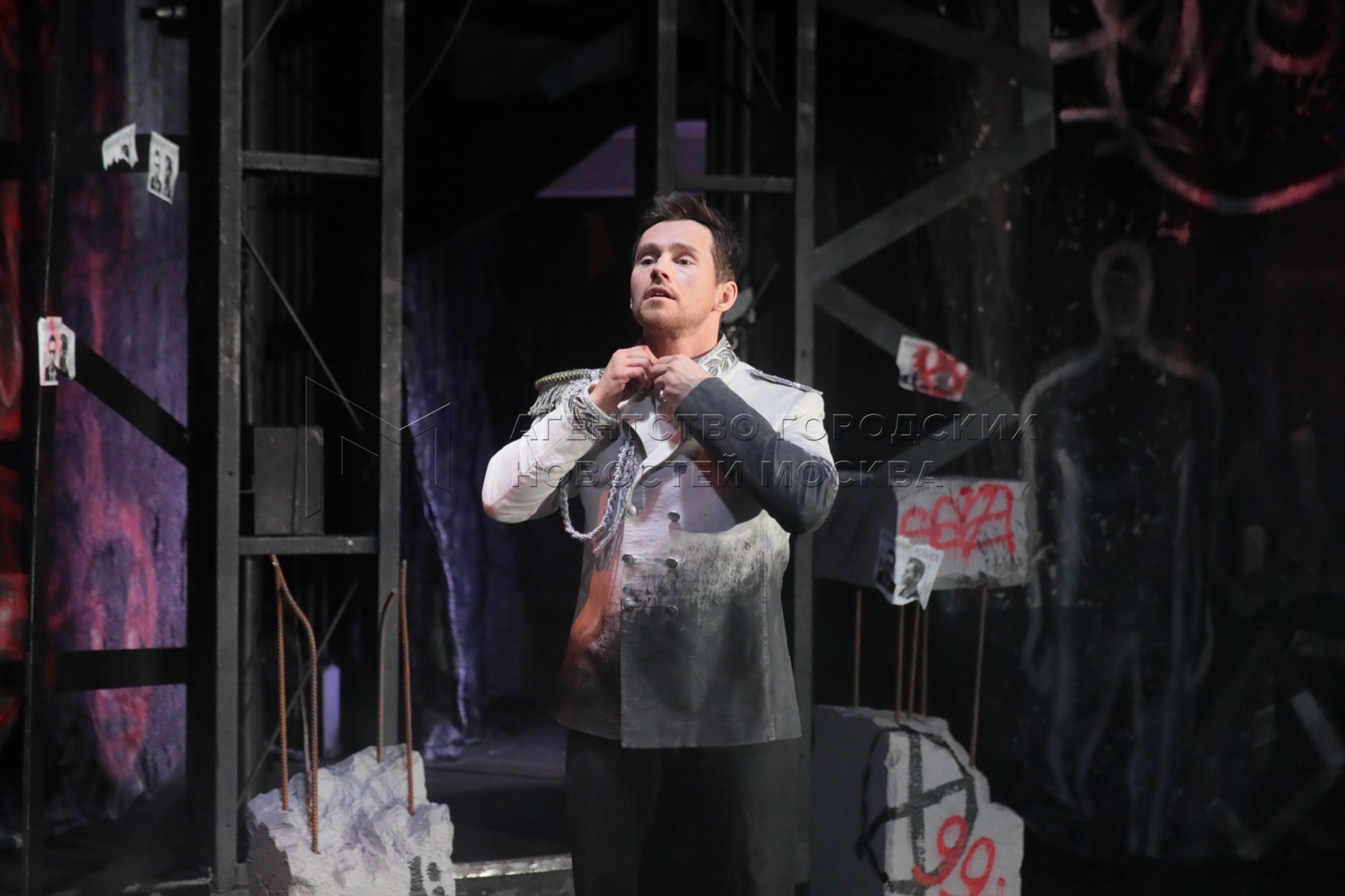 Актер Илья Антоненко (Карл Моор). Репетиция премьерного спектакля «Разбойники» в ...
