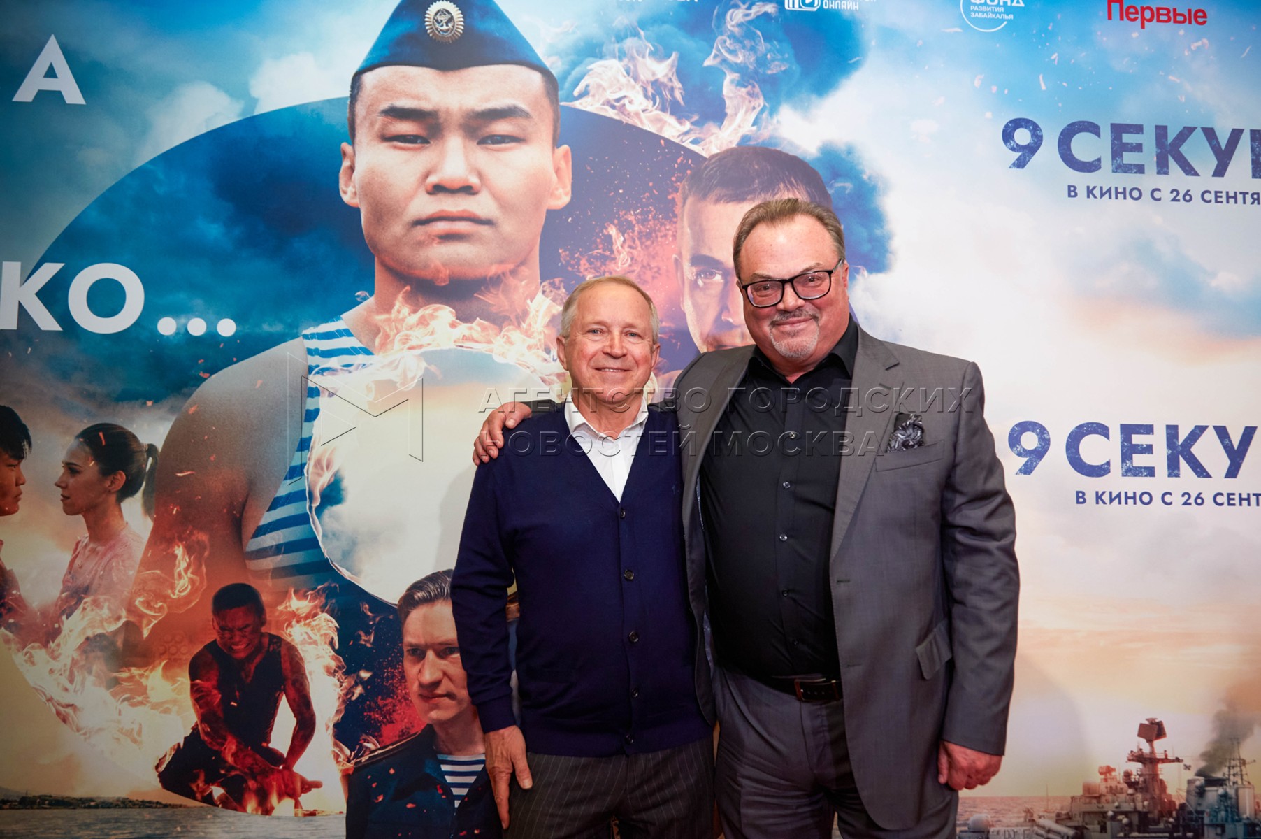 • Описание: Продюсер Юрий Обухов (слева) и президент кинокомпании «Каропрокат» Алексей Рязанцев. Премьера в кинотеатре «Октябрь» драмы режиссера Олега Штрома «9 секунд» о героическом подвиге 19-летнего матроса Тихоокеанского флота Алдара Цыденжапова.