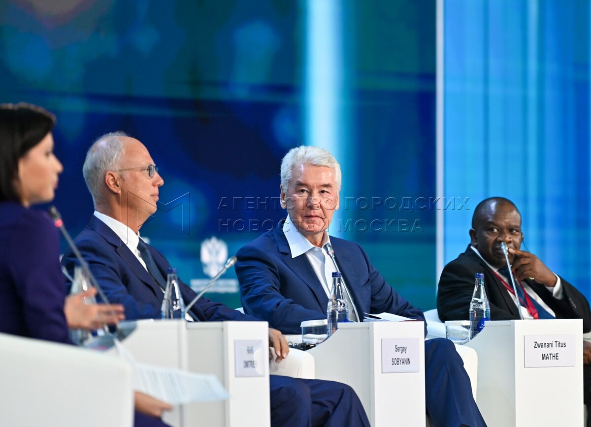 - Описание: Генеральный директор Российского фонда прямых инвестиций (РФПИ) Кирилл Дмитриев, мэр Москвы Сергей Собянин и генеральный директор Южноафриканского национального института развития энергетики (SANEDI) Званани Титус Мате (слева направо) на сессии «Энергия мегаполиса: как создать комфортную городскую среду для каждого человека» VII международного форума «Российская энергетическая неделя» в центральном выставочном зале «Манеж». Фото: Владимир Новиков, пресс-служба мэра и правительства Москвы.