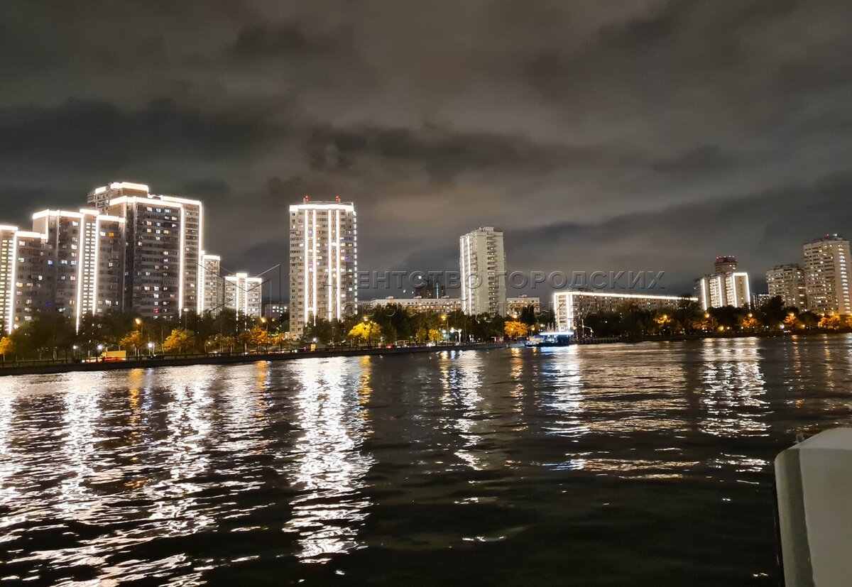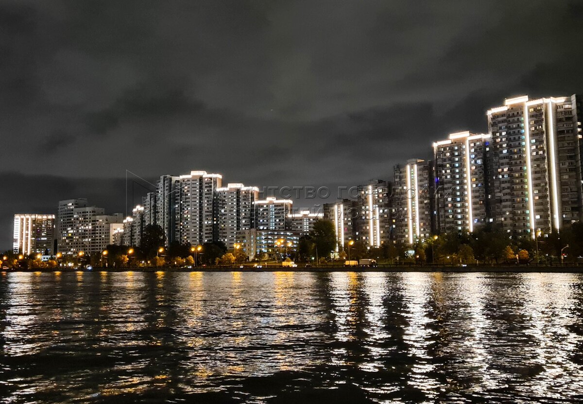 Архитектурно-художественная подсветка зданий на Нагатинской набережной на юге Мос...