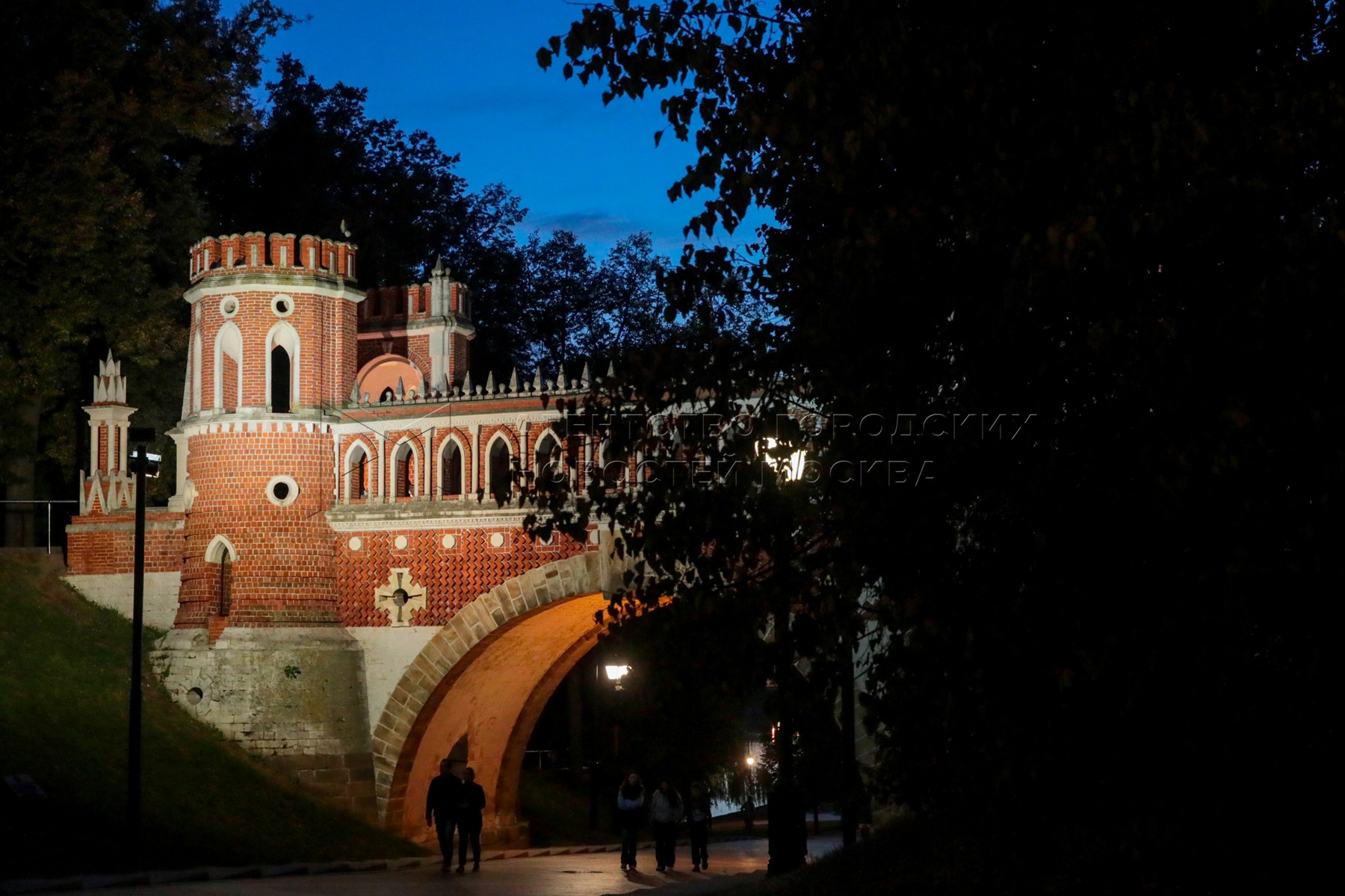 Территория музея-заповедника «Царицыно» в вечернее время.