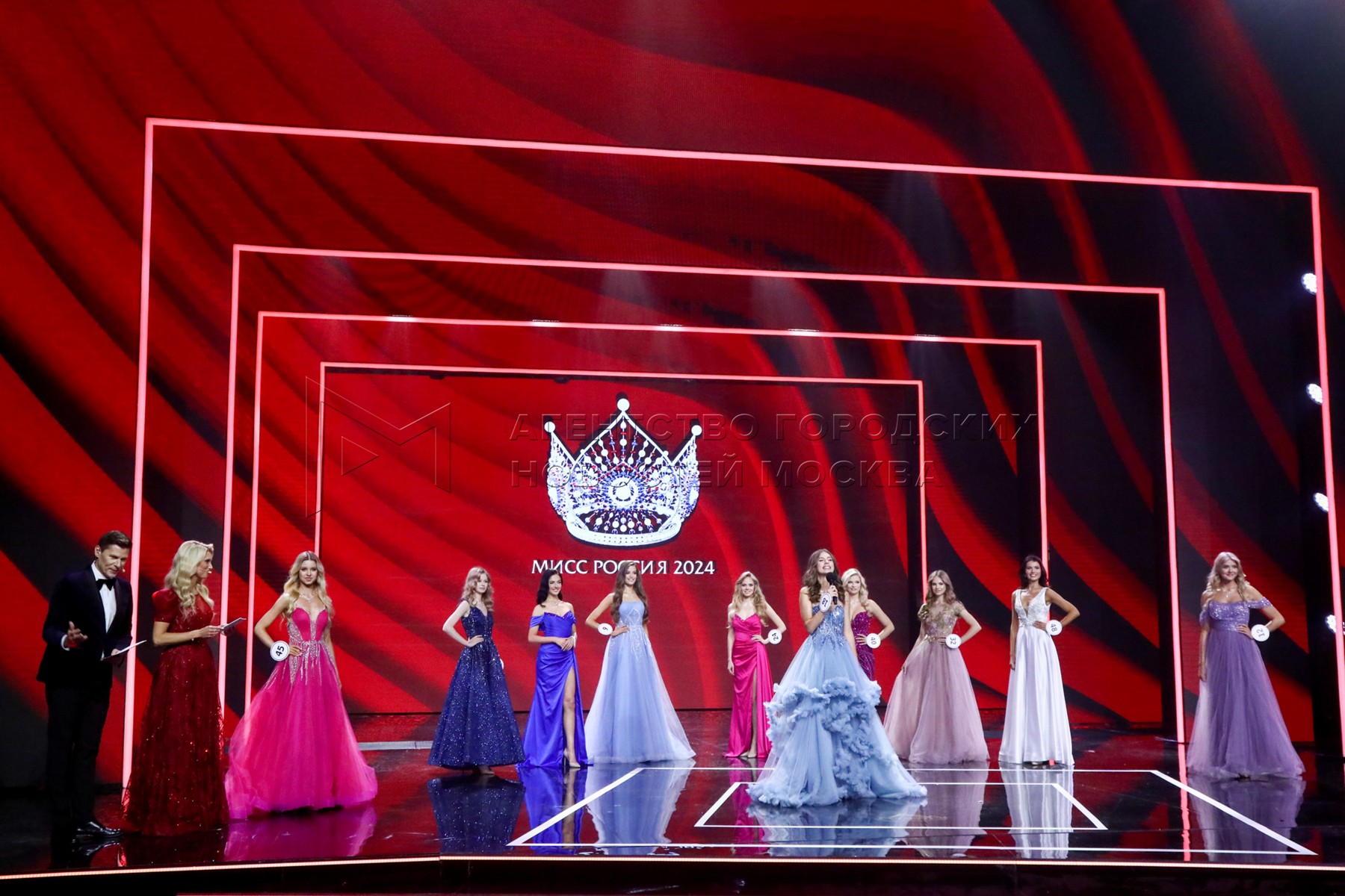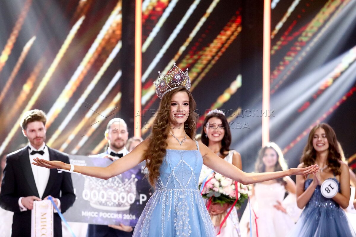 - Описание: Вторая вице-мисс Россия 2024 Ульяна Евдокимова (Санкт-Петербург), мисс Россия 2024 Валентина Алексеева (Республика Чувашия) и Первая вице-мисс Россия 2024 Ирина Миронова (Тольятти) (слева направо). Финальное шоу конкурса красоты «Мисс Россия 2024» в концертном зале Barvikha Luxury Village.