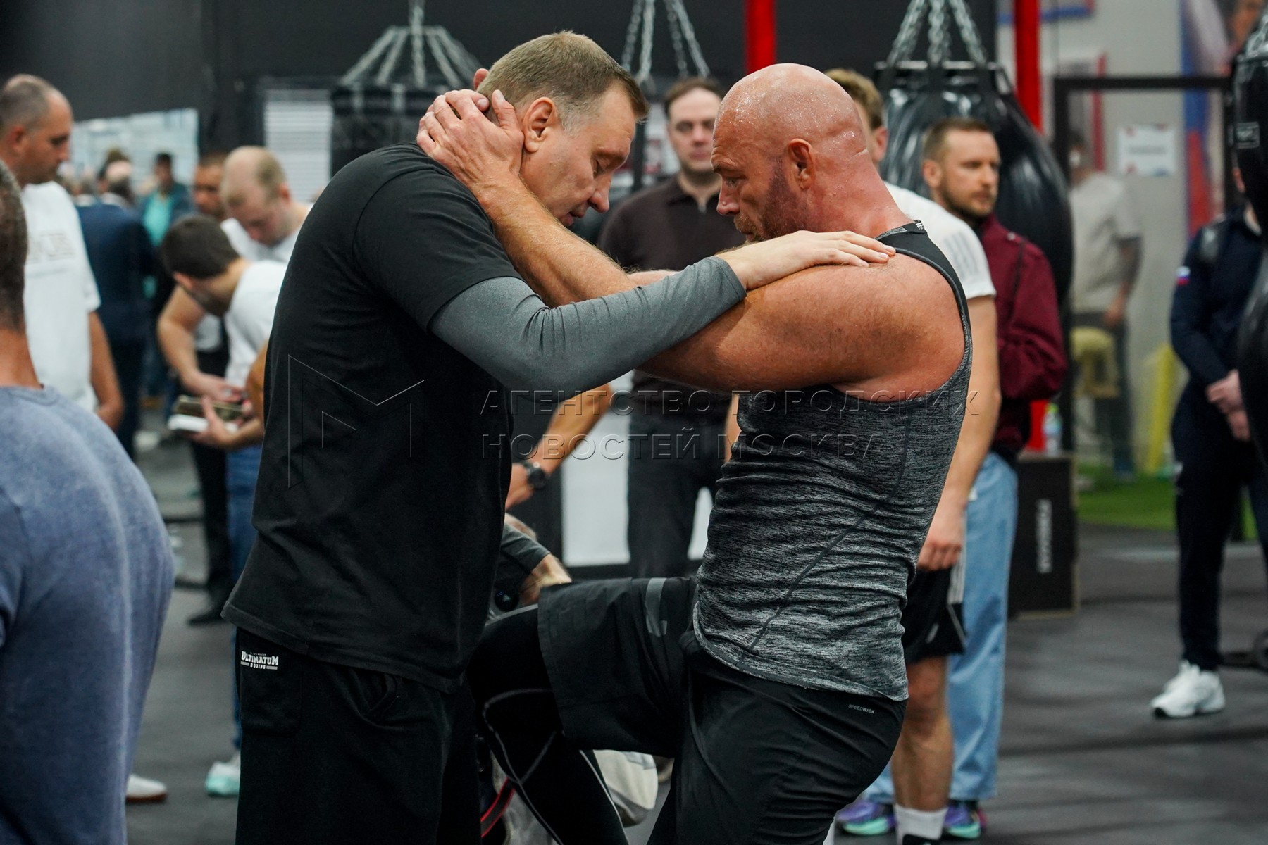 • Описание: Актер Владислав Демин (справа) во время встречи «Время сильных 6» с участием известных в России звезд политики, бизнеса, спорта и искусства в Центре прогресса бокса.