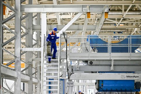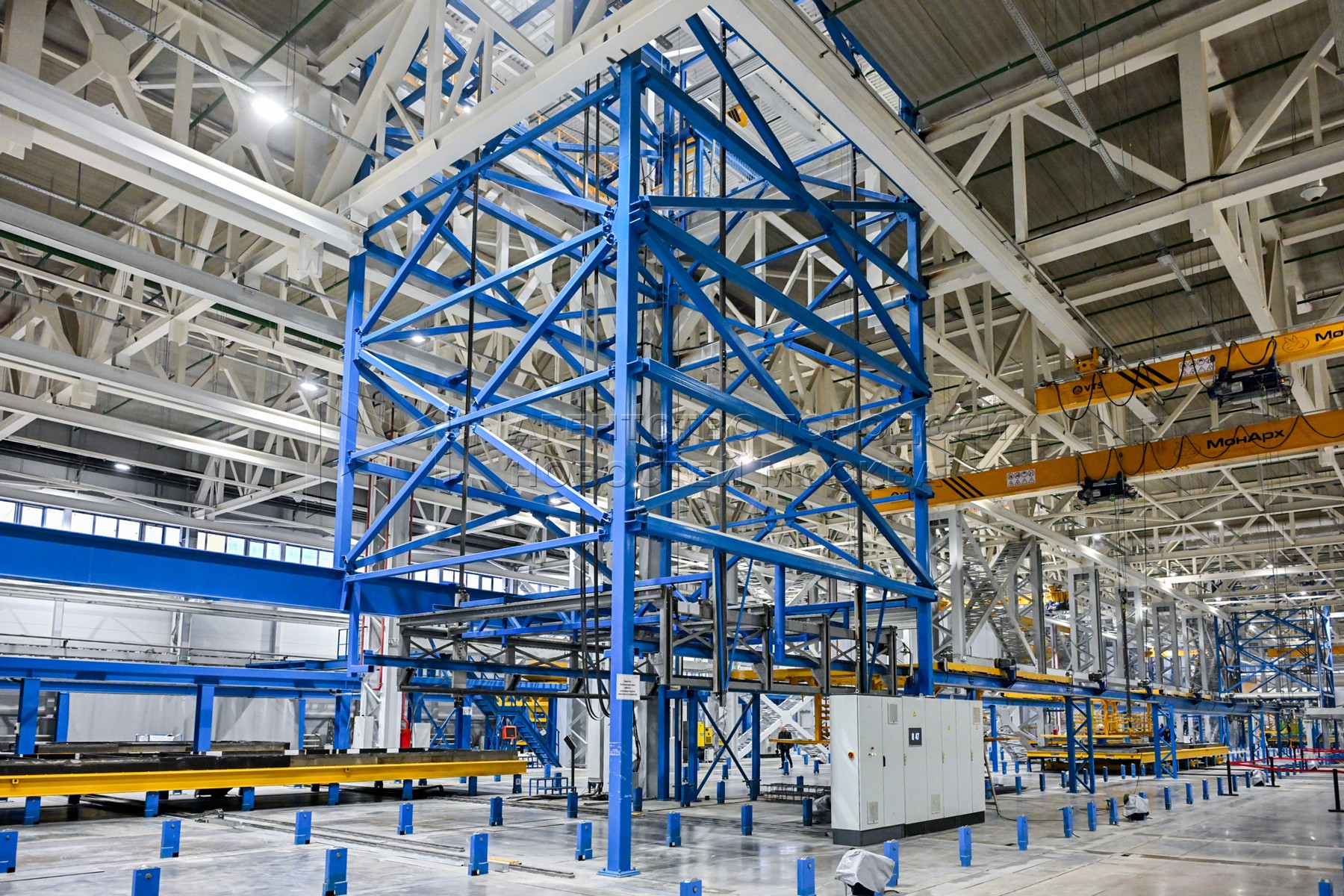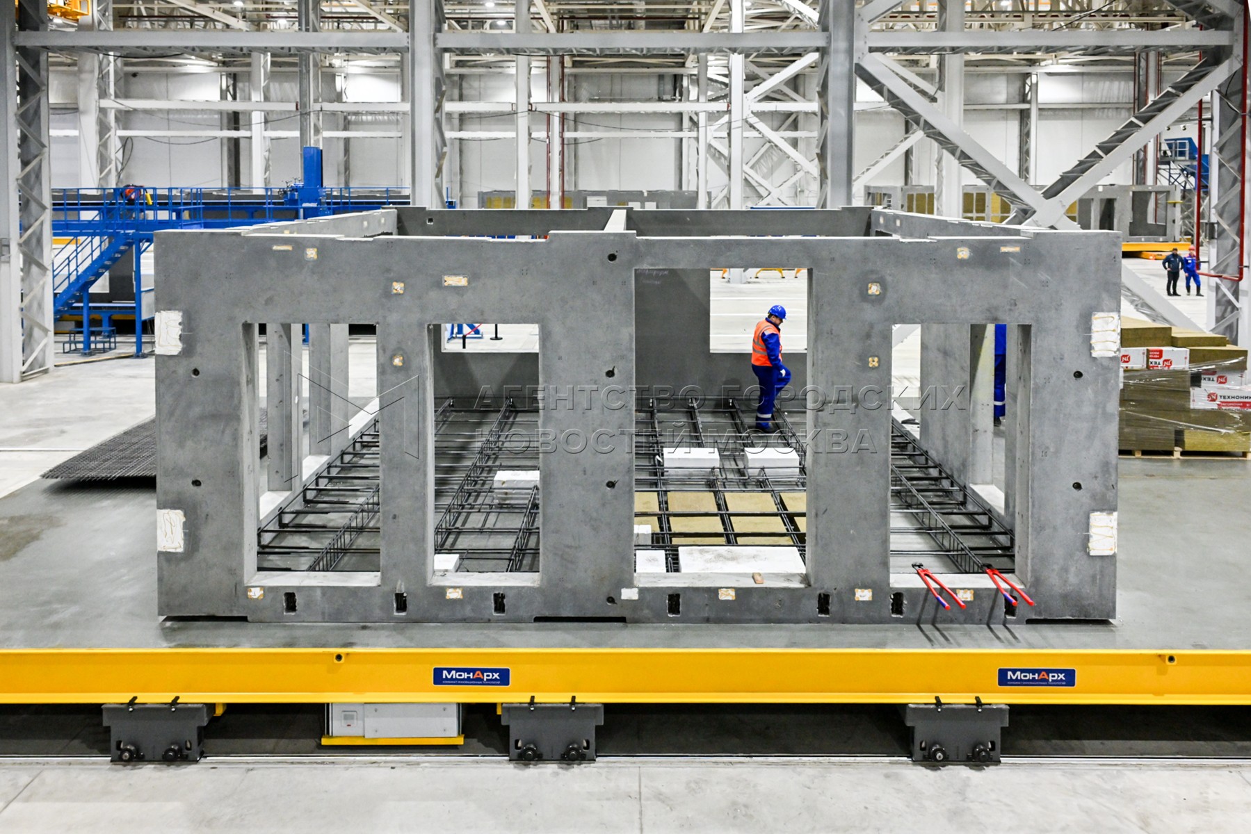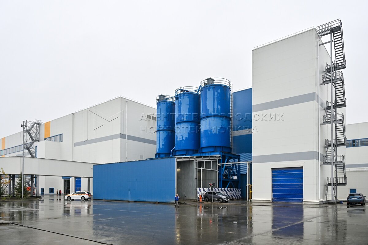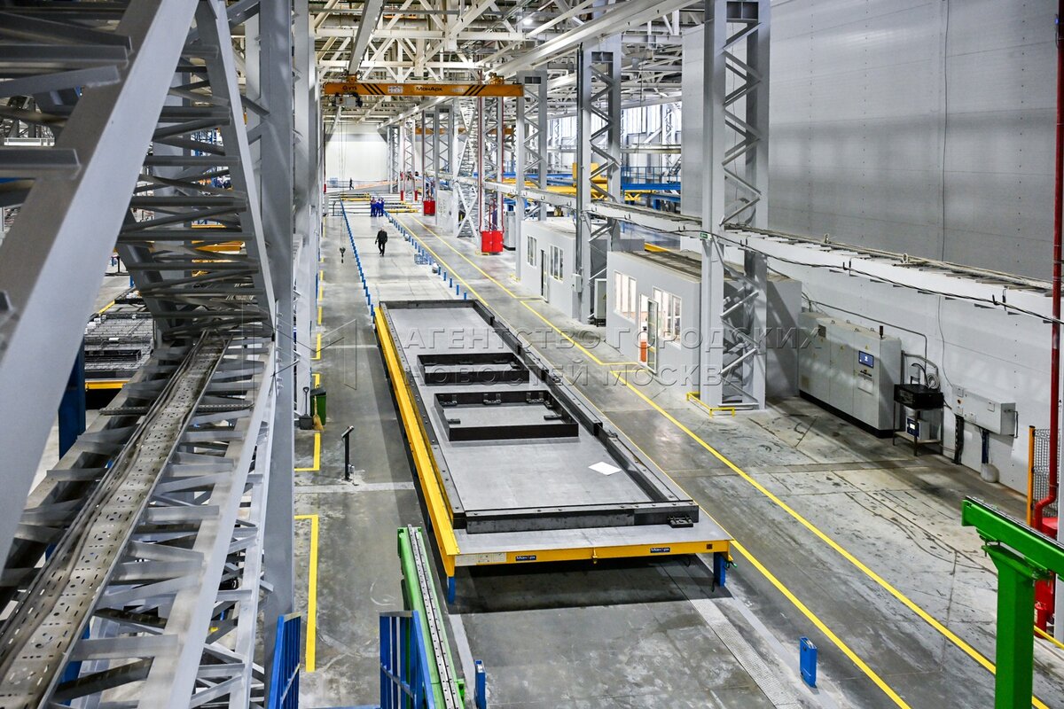 - Описание: Новый роботизированный завод по производству крупногабаритных жилых модулей, расположенный между Боровским шоссе и ул. Привольная во Внуково. Фото: Максим Мишин, пресс-служба мэра и правительства Москвы.