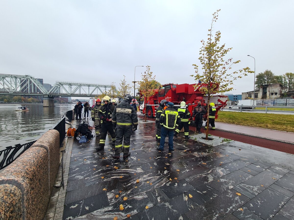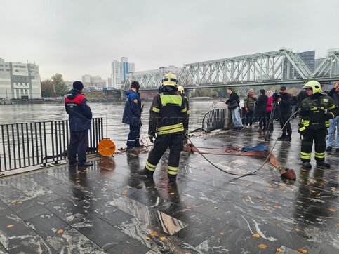- Заголовок: Извлечение легкового автомобиля из Москвы-реки после ДТП на набережной Марка Шагала