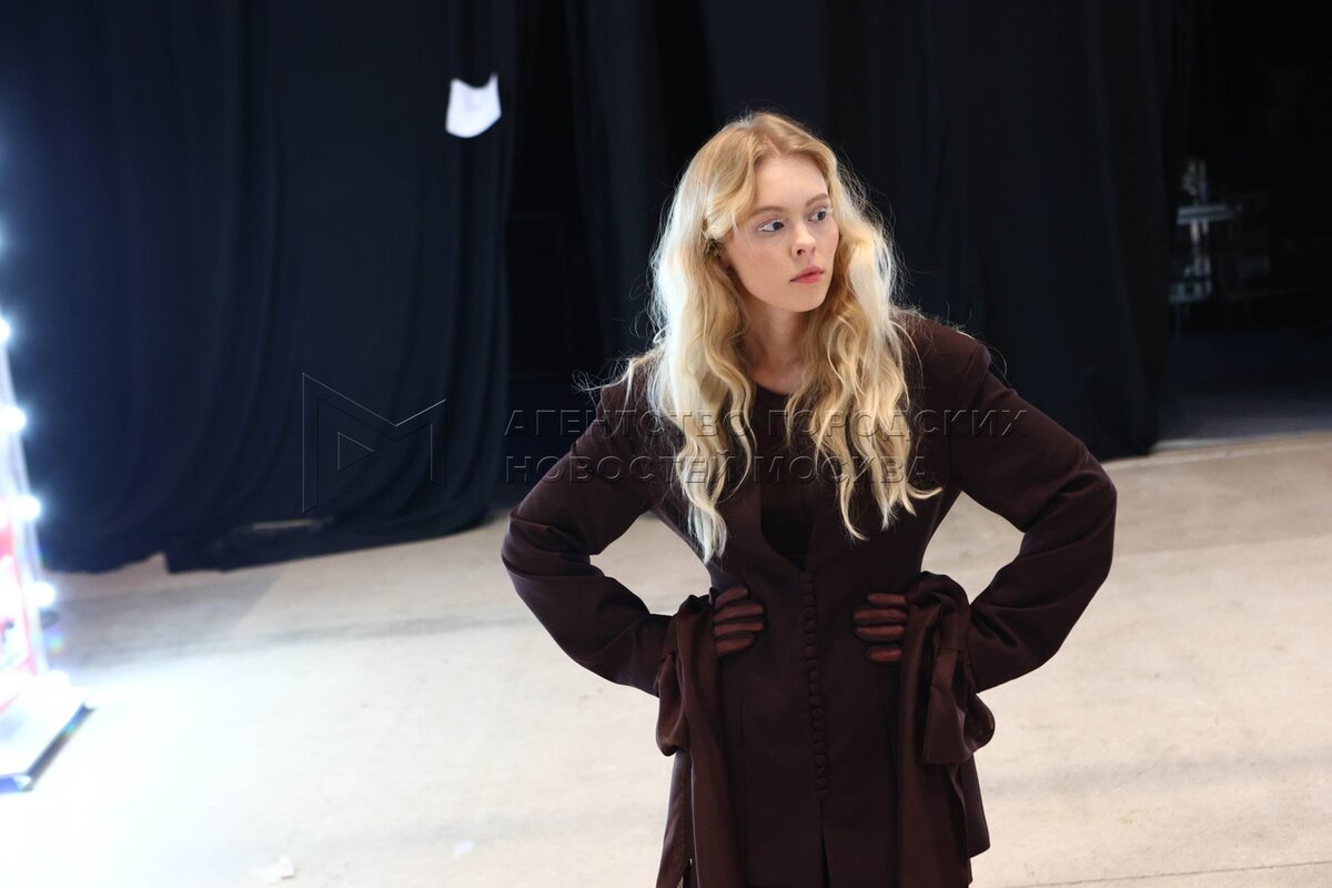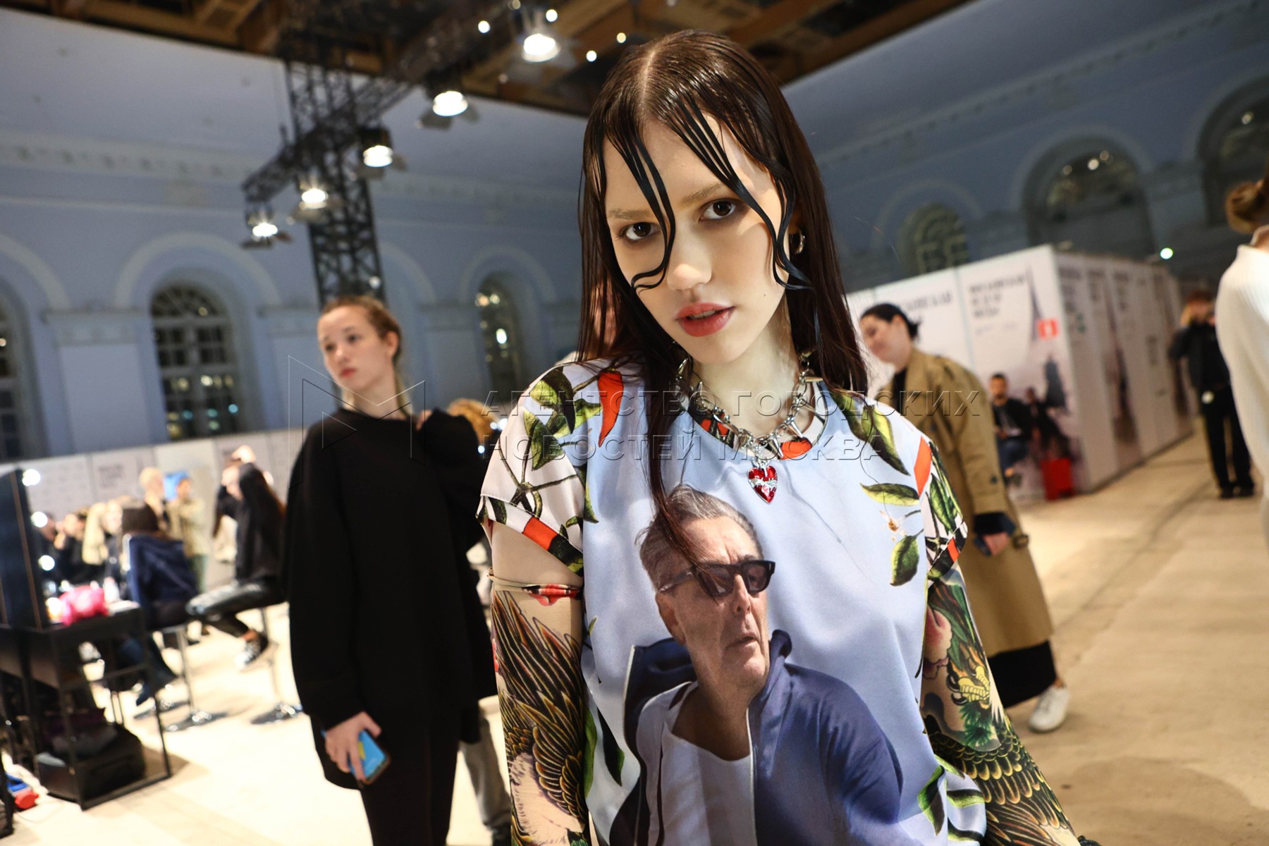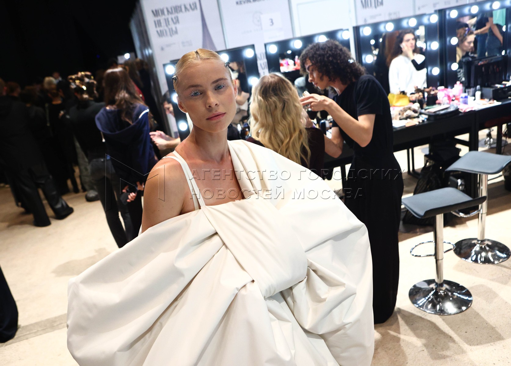 Модель перед началом показа коллекции. Московская неделя моды в центральном выста...