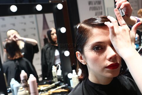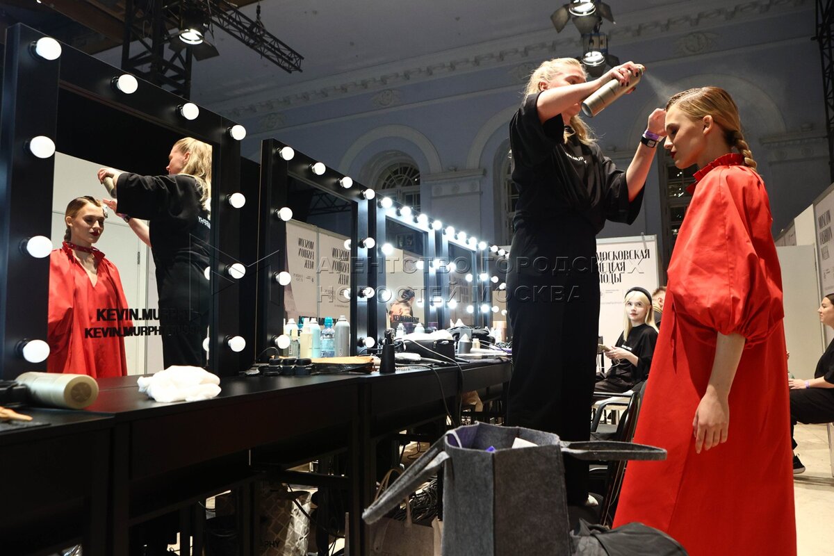 Подготовка модели перед началом показа коллекции. Московская неделя моды в центра...