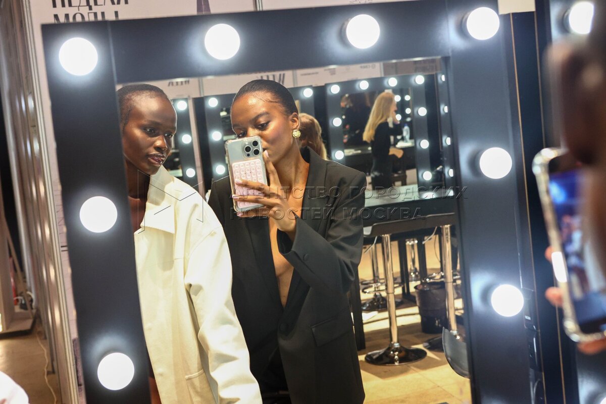Модели перед началом показа коллекций. Московская неделя моды в центральном выста...