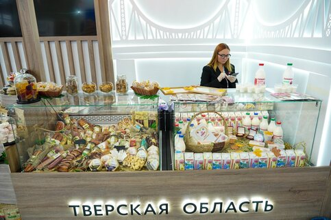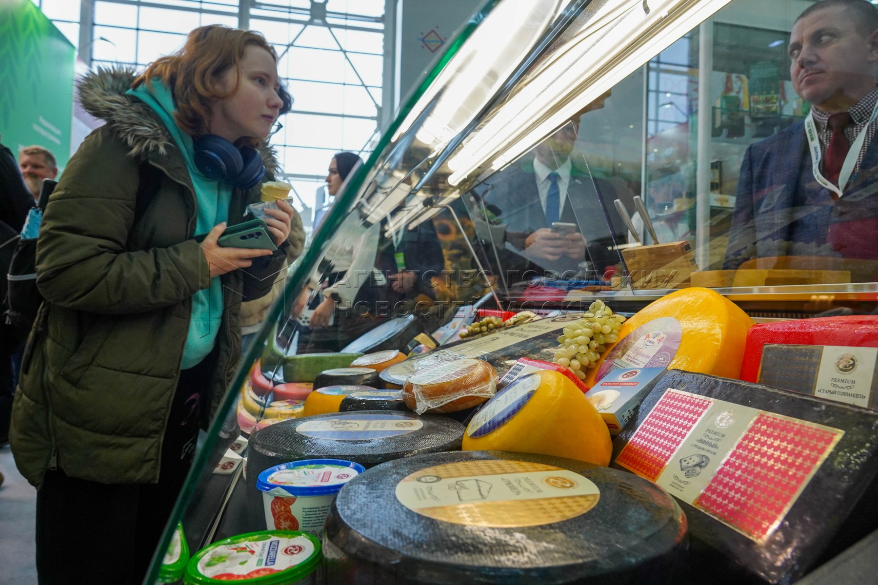 Витрина с сырами. Открытие XXVI Российской агропромышленной выставки «Золотая осе...