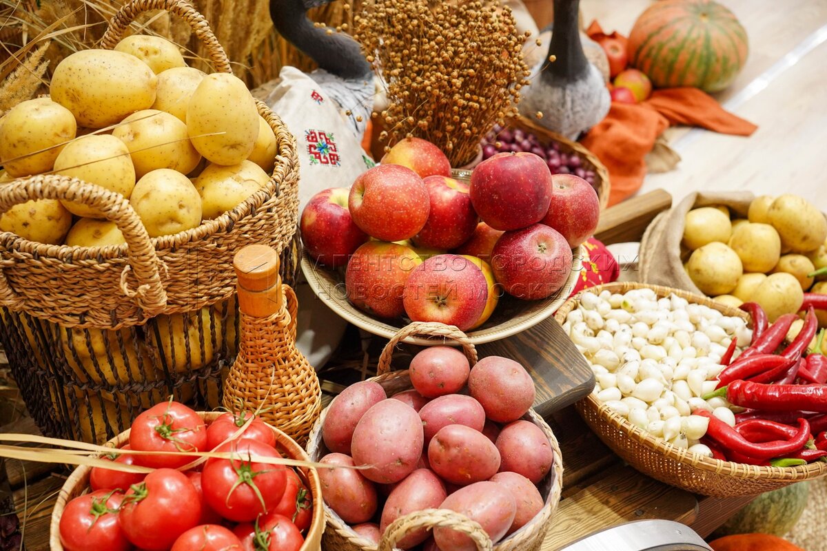 Витрина с овощами и фруктами. Открытие XXVI Российской агропромышленной выставки ...