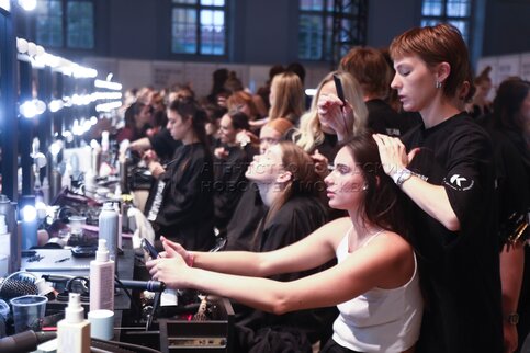 • Описание: Подготовка моделей перед началом показа коллекции. Московская неделя моды в центральном выставочном зале «Манеж».