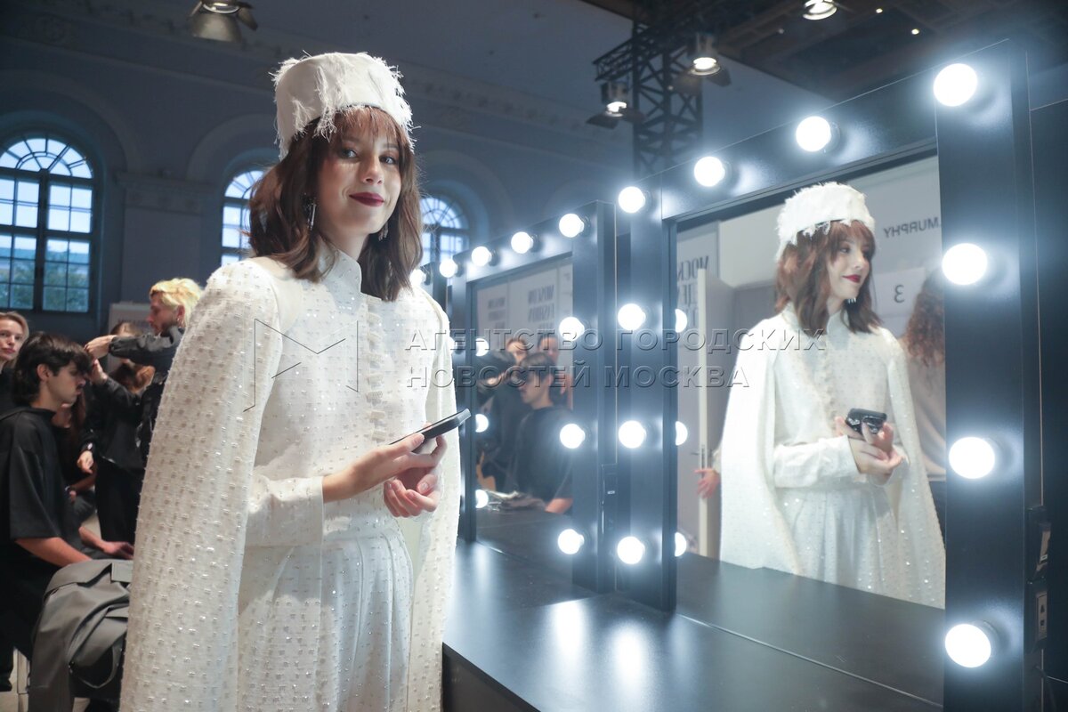 Модель перед началом показа коллекции. Московская неделя моды в центральном выста...