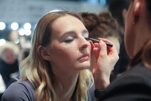 Подготовка модели перед началом показа коллекции. Московская неделя моды в центра...