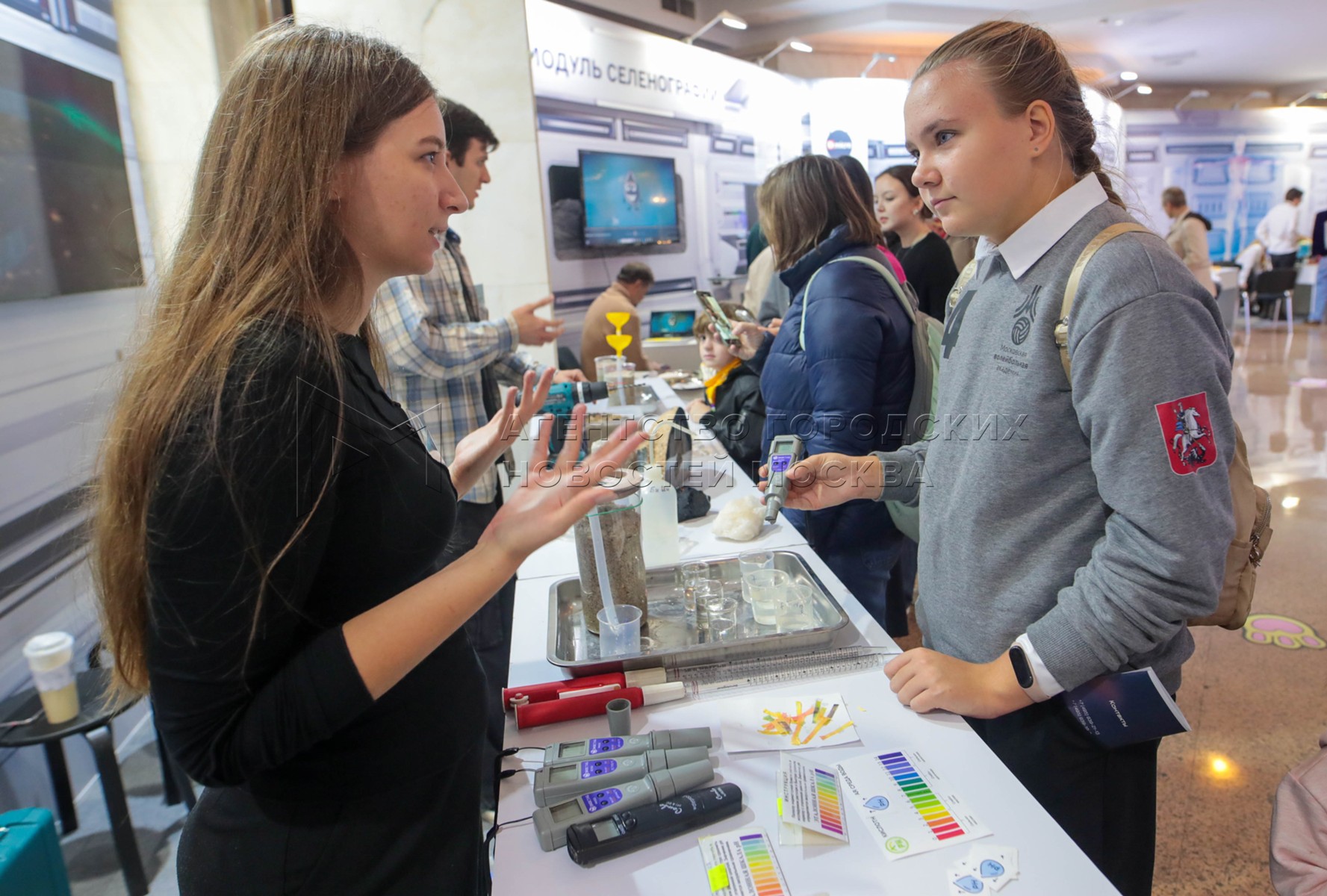 - Описание: Посетители и участники на площадке фестиваля «Наука 0+» в Фундаментальной библиотеке МГУ.