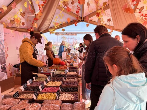 Прилавок с вареньем. Открытие площадки фестиваля «Золотая осень» в «Москинопарке»...