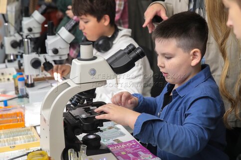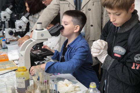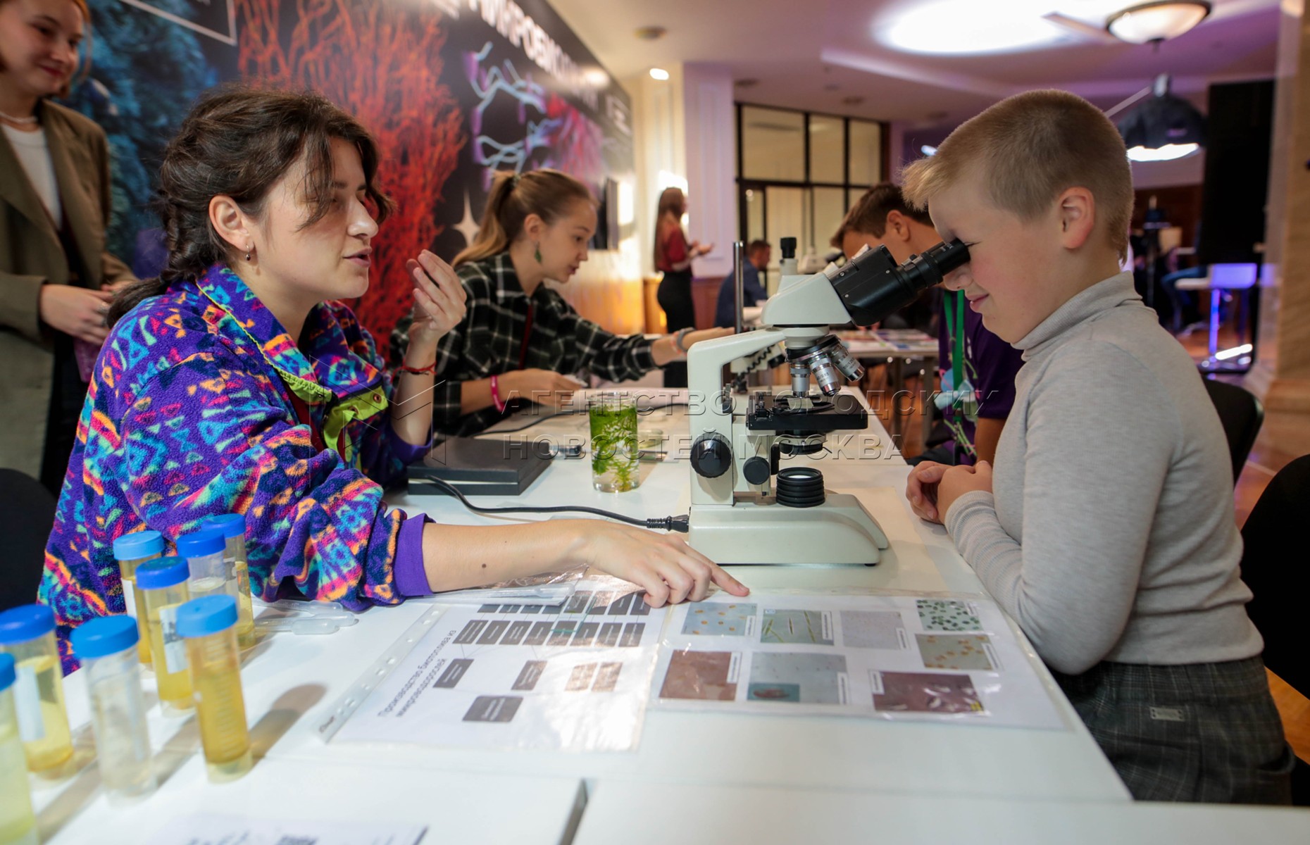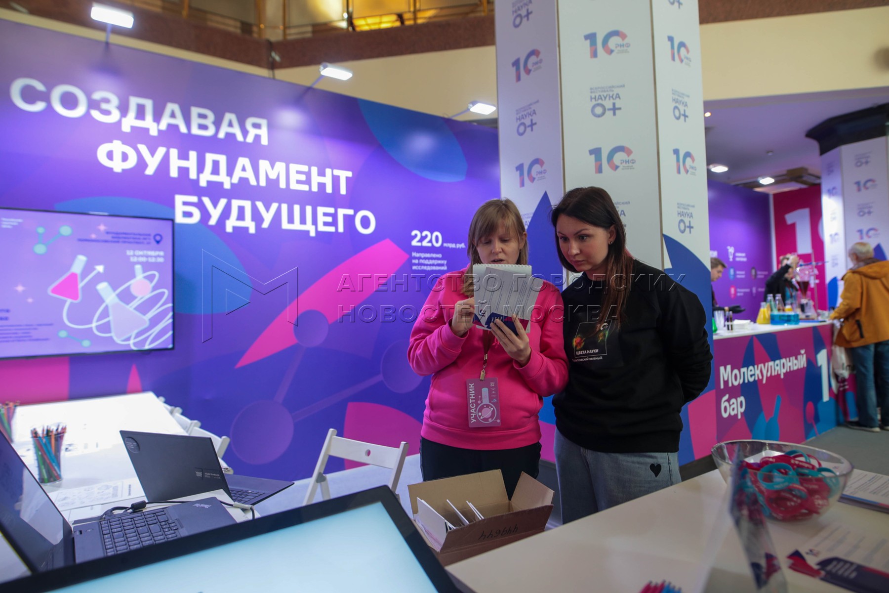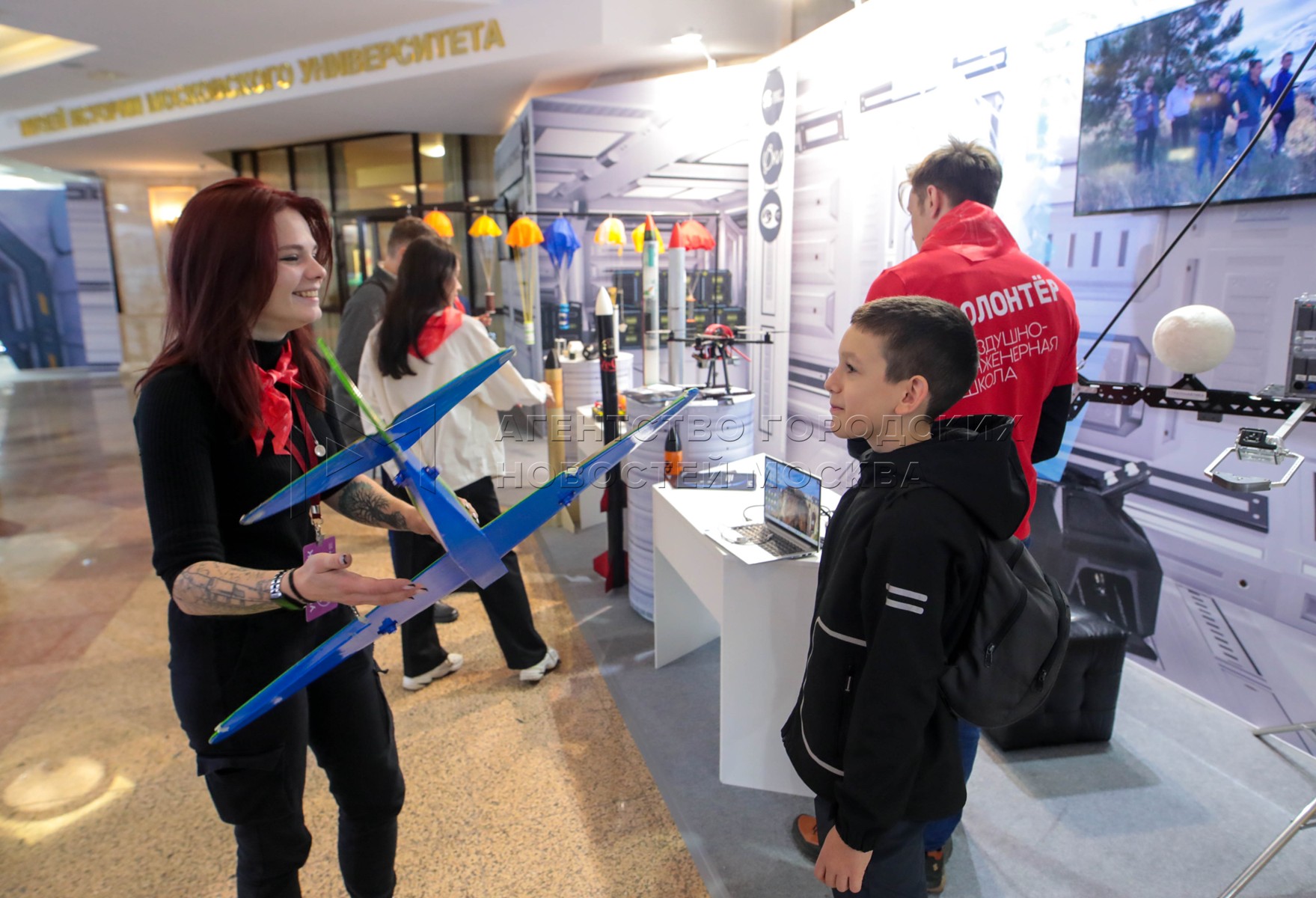 - Описание: Посетители и участники на площадке фестиваля «Наука 0+» в Шуваловском корпусе МГУ.