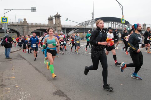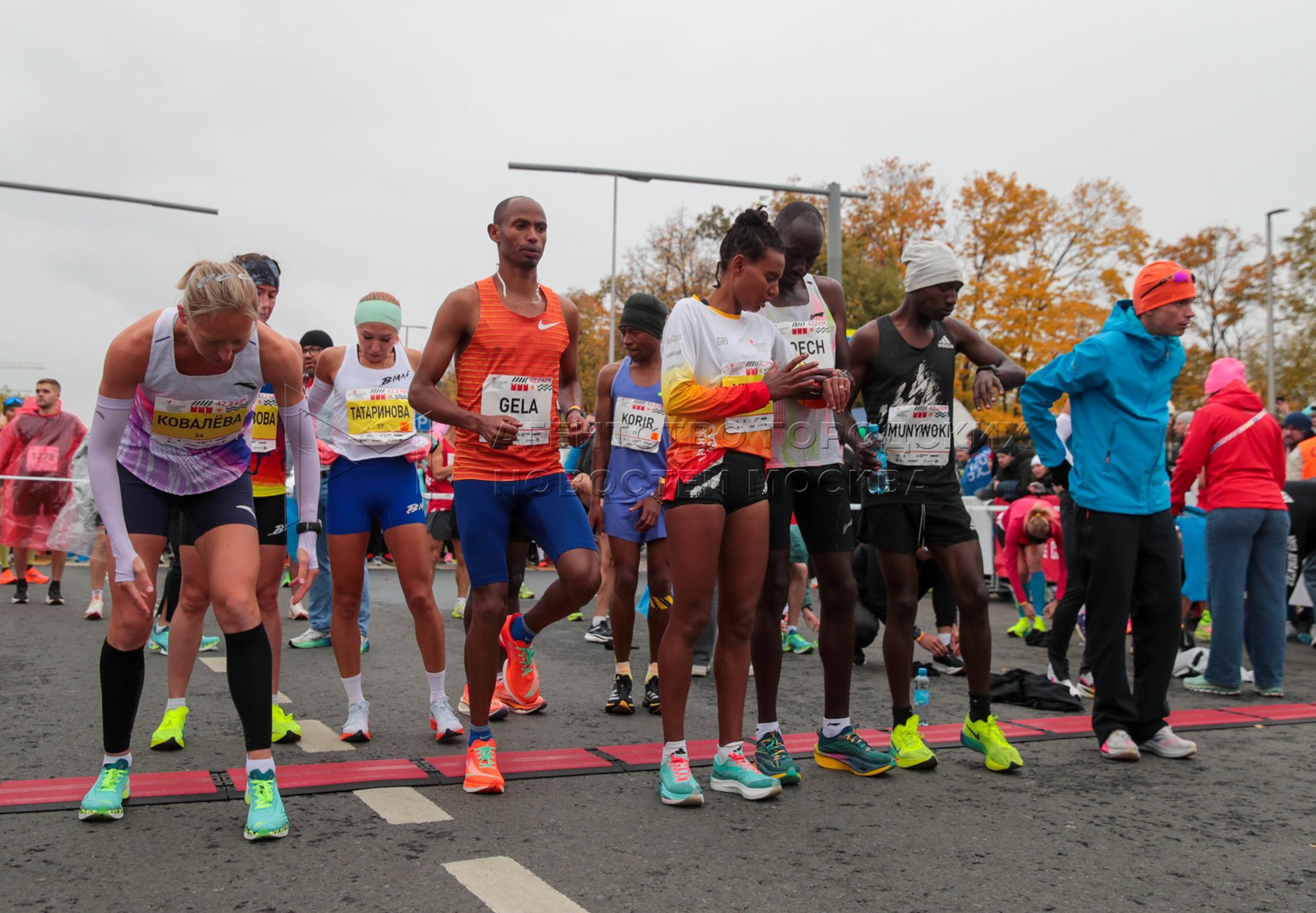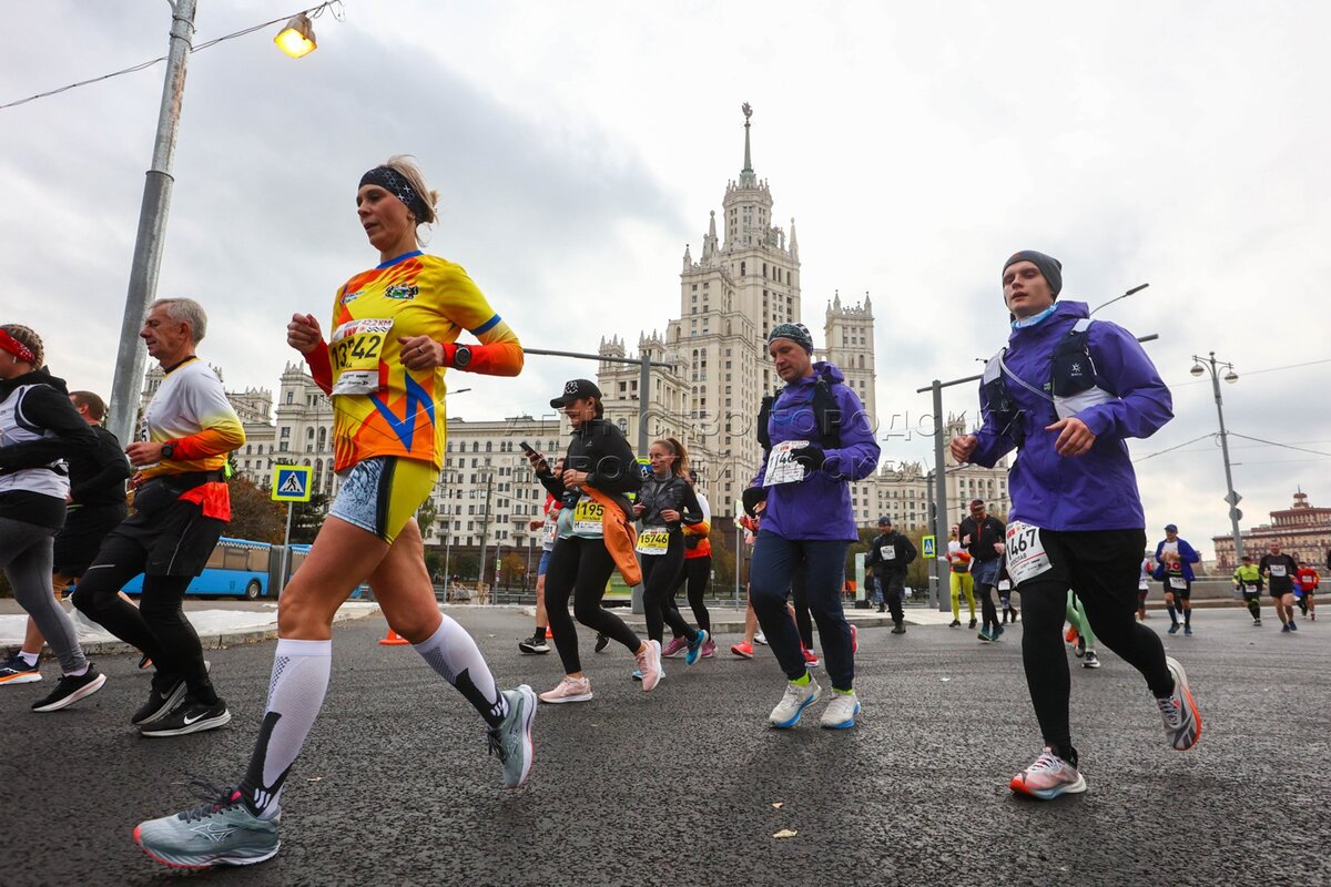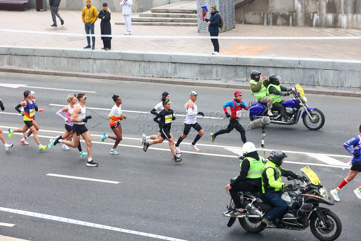 Участница марафона Луиза Дмитриева (Россия) (слева). Московский марафон.