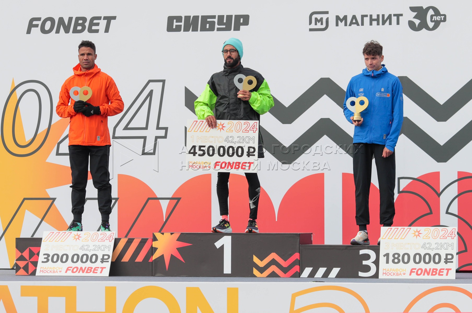 Участники Московского марафона Маджуб Эль-Дацца (Марокко) (второе место), Юнесс Б...