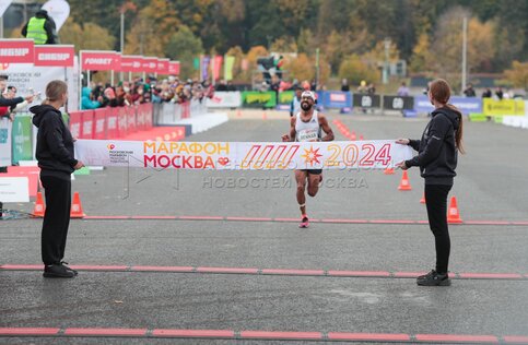 Участник Московского марафона Дмитрий Неделин (Россия) (третье место). Московский...