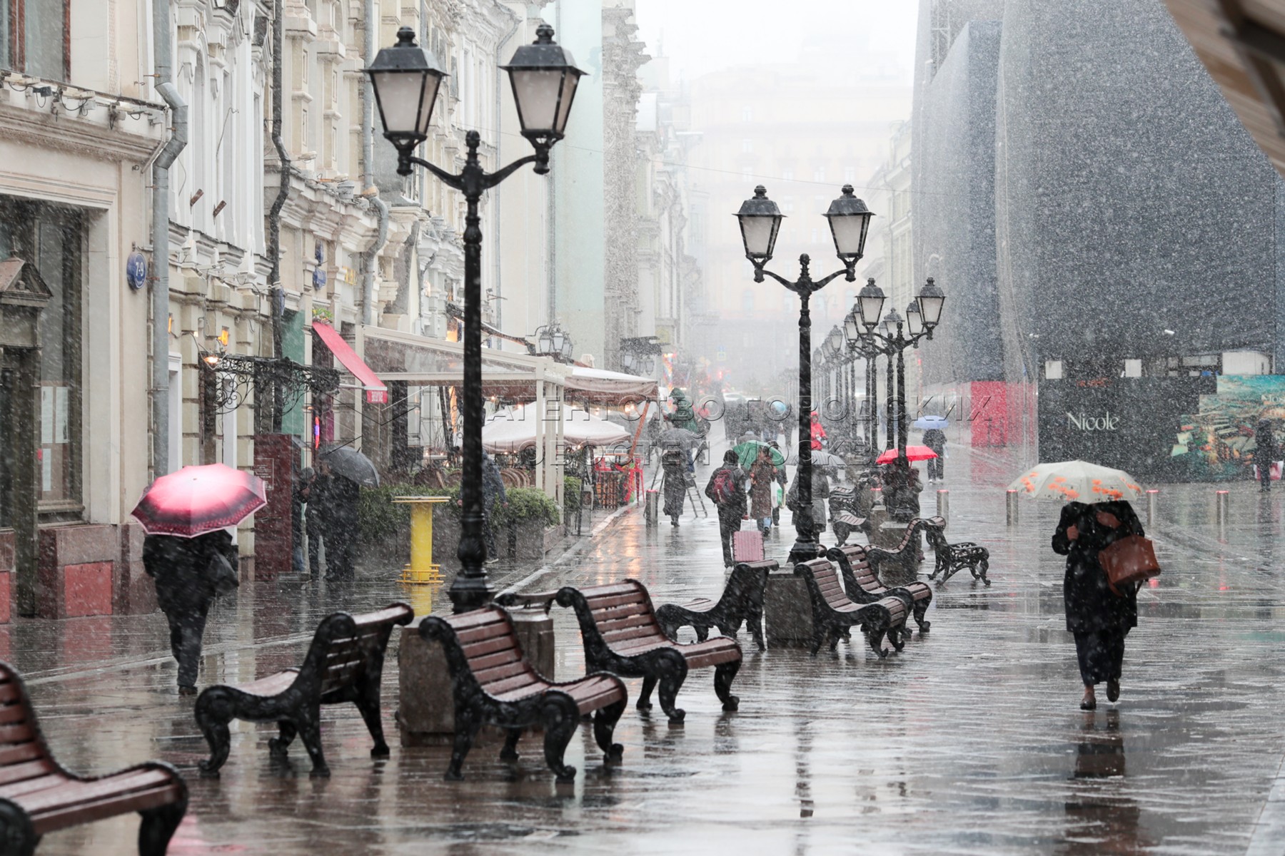 • Описание: Дождь и мокрый снег в Москве 14 октября 2024 года.