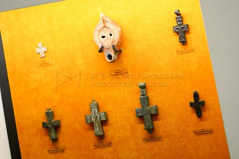 Крест. Показ выставки «Византийская симфония. Сокровища земные и небесные» в Музе...