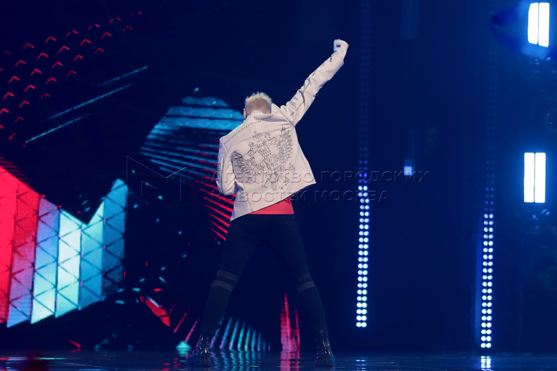 Певец Ярослав Дронов (Шаман) во время торжественного концерта и награждения победителей II Всероссийского конкурса художественных работ, посвященных достижениям легендарных спортсменов, «Мы верим твердо в героев спорта» во Дворце гимнастики Ирины Винер.